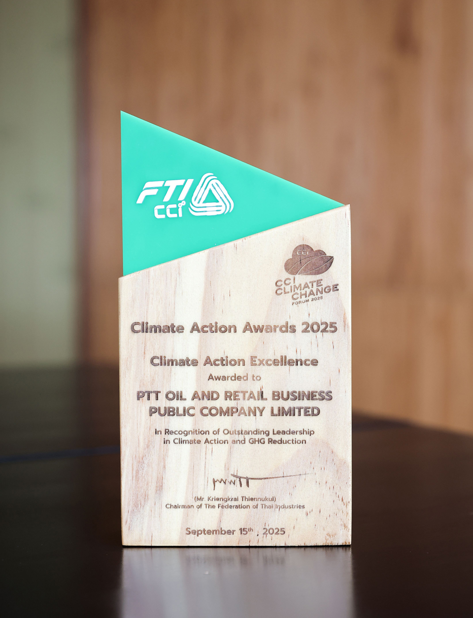 บริษัท ปตท. น้ำมันและการค้าปลีก จำกัด (มหาชน) หรือ OR ได้รับรางวัล Climate Action Award ระดับ Climate Action Excellence จากสถาบันการเปลี่ยนแปลงสภาพภูมิอากาศ (Climate Change Institute: CCI) ภายใต้สภาอุตสาหกรรมแห่งประเทศไทย (ส.อ.ท.) ซึ่งเป็นรางวัลสูงสุด ตอกย้ำการเป็นผู้นำในการขับเคลื่อนอุตสาหกรรมไทยสู่อนาคตอย่างยั่งยืน มีความโดดเด่นในการดำเนินงานด้าน Climate Action และสะท้อนถึงความมุ่งมั่นร่วมกันของภาคอุตสาหกรรมไทยในการขับเคลื่อนสู่เป้าหมายการปล่อยก๊าซเรือนกระจกสุทธิเป็นศูนย์ (Net Zero Emissions)