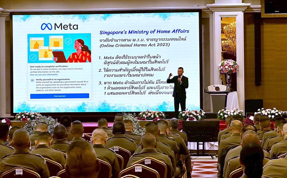 “วันนี้เป็นการแลกเปลี่ยนเรียนรู้ร่วมกันถึงความก้าวทางเทคโนโลยีโทรคมนาคมกับอาชญากรรมยุคใหม่ รวมทั้งความร่วมมือระหว่าง กสทช. และ ตำรวจ ในการป้องกันปราบปราม ว่าสิ่งใดที่เราทำไปแล้ว และอะไรที่จะทำร่วมกันต่อไปในอนาคต ซึ่งถือเป็นสิ่งสำคัญสำหรับผู้บริหารองค์กร โดยเฉพาะหน่วยงานบังคับใช้กฎหมาย เพราะเมื่อเทคโนโลยีเข้ามาเปลี่ยนรูปแบบการใช้ชีวิตของผู้คนในสังคม อาชญากรรมรูปแบบใหม่ ๆ ก็ตามมา เช่น แก๊งคอลเซ็นเตอร์, สแกมเมอร์, การหลอกลวงที่เปลี่ยนแปลงรูปแบบและวิธีการใหม่ ๆ ตลอดเวลาอันเป็นปัญหาใหญ่ของสังคมไทยในปัจจุบัน การป้องกันและปราบปรามอาชญากรรมยุคใหม่นี้ จำเป็นต้องอาศัยความร่วมมือจากหลากหลายหน่วยงาน ดังเช่นในช่วงที่ผ่านมา อาชญากรรมประเภทนี้รุนแรง สำนักงาน กสทช. จึงได้ทำงานอย่างใกล้ชิดกับสำนักงานตำรวจแห่งชาติ ในการแก้ไขปัญหาแก๊งคอลเซ็นเตอร์ ตั้งแต่การกวดขันจับกุมสถานีโทรคมนาคมและเสาสัญญาณที่ผิดกฎหมาย การลักลอบลากสายส่งสัญญาณโทรคมนาคมข้ามพรมแดน การกวาดล้างซิมเถื่อน ควบคู่กับการประชาสัมพันธ์ สร้างการรับรู้ให้สังคม ทั้งนี้การได้รับเชิญมาบรรยายในวันนี้ ถือเป็นโอกาสดีที่ได้มาพบปะ ผู้บริหารหน่วยงานระดับผู้บัญชาการและผู้บังคับการจากทั่วประเทศ ซึ่งถือเป็นกลไกสำคัญในการแก้ไขปัญหาอาชญากรรมทางเทคโนโลยี ตั้งแต่ภาพรวมของประเทศไปจนถึงระดับพื้นที่ในแต่ละจังหวัด ซึ่งอยู่ในกำกับของผู้บังคับการและผู้บัญชาการ ที่มาร่วมสัมมนานี้ เพื่อรับรู้ทำความเข้าใจ ถึงสิ่งที่ได้ดำเนินการไปแล้ว และที่จะทำร่วมกันต่อไปในอนาคต เพื่อให้การป้องกันปราบปรามอาชญากรรมทางเทคโนโลยี มีประสิทธิภาพสูงสุด”