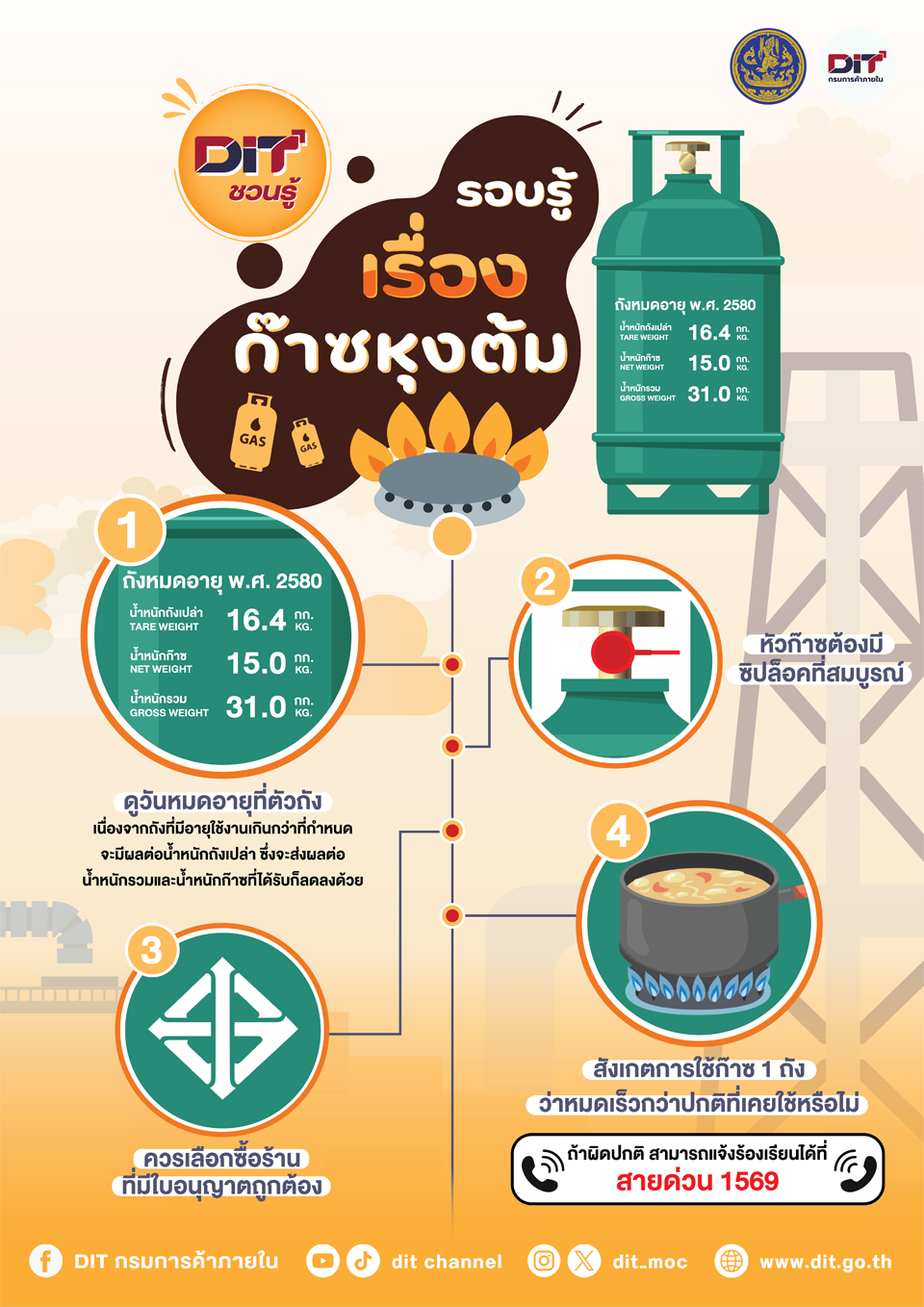 กรมการค้าภายใน (DIT) ลงพื้นที่จังหวัดพิษณุโลก ตรวจเข้มโรงบรรจุก๊าซหุงต้ม พบถังก๊าซบรรจุน้ำหนักขาด ดำเนินคดีตามกฎหมายเอาผิดสถานประกอบการ เพื่อคุ้มครองสิทธิผู้บริโภคและสร้างความเป็นธรรมทางการค้า