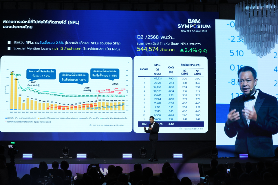 BAM เปิดฉากเวทีสัมมนาใหญ่แห่งปี BAM SYMPOSIUM : New Era of AMC 2025 ครั้งที่ 1 อย่างเป็นทางการ เมื่อวันที่ 28 ตุลาคม 2568 ณ ห้องนภาลัย แกรนด์ บอลรูม โรงแรมดุสิตธานี กรุงเทพฯ โดยได้รับเกียรติจาก นายวิทัย รัตนากร ผู้ว่าการธนาคารแห่งประเทศไทย เป็นประธานในพิธีเปิดงาน พร้อมกล่าวปาฐกถาพิเศษถึงบทบาท และความสำคัญของภาคการเงินต่อการฟื้นฟูเศรษฐกิจไทย ท่ามกลางผู้เข้าร่วมงานทั้งจากภาครัฐ เอกชน นักลงทุน นักวิชาการ และผู้ประกอบการในวงการบริหารสินทรัพย์ทั่วประเทศ