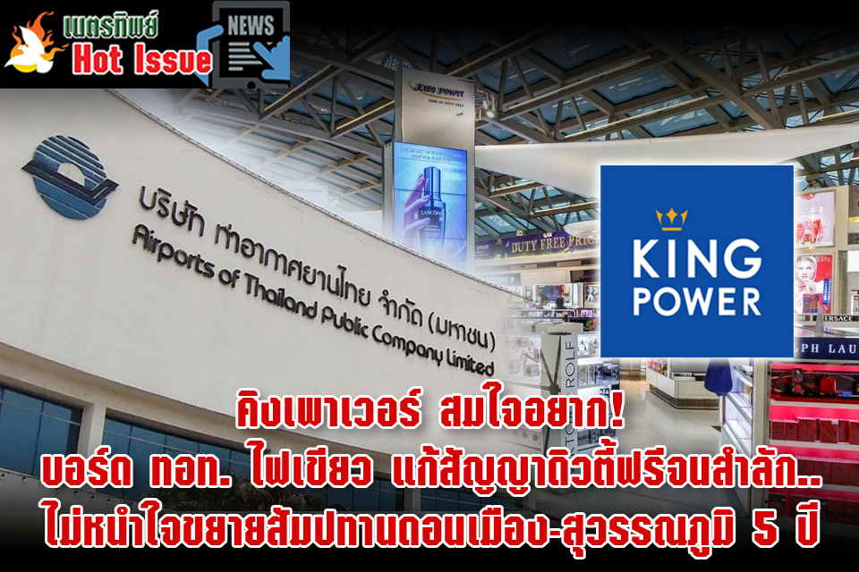 บอร์ด ทอท. ไฟเขียว แก้สัมปทานดิวตีฟรี คิงเพาเวอร์ จากที่ตั้งแท่นรื้อผลตอบแทนขั้นต่ำ กลับเลยเถิดสู่ขยายสัญญาดอนเมือง 5 ปี แถมสุวรรณภูมิอีก 2 ปี อ้างเพื่อบริการผู้โดยสารได้ต่อเนื่อง ลดความเสี่ยงขาดรายได้ดีกว่าเลิกสัญญาประมูลใหม่