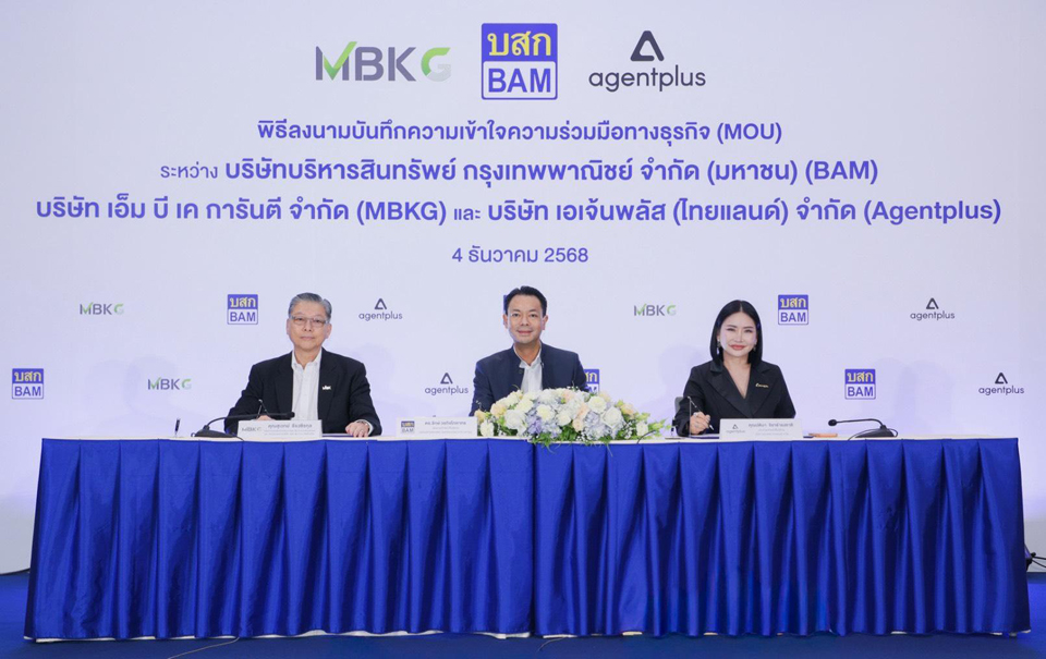 โดย บริษัทบริหารสินทรัพย์ กรุงเทพพาณิชย์ จำกัด (มหาชน) (BAM) ได้ลงนามบันทึกข้อตกลงความร่วมมือทางธุรกิจ (MOU) บริษัท เอ็ม บี เค การันตี จำกัด (MBKG) กับ บริษัท เอเจ้นพลัส (ไทยแลนด์) จำกัด (Agentplus) เพื่อลดระยะเวลาในการถือครองทรัพย์ และเร่งการสร้างรายได้ รวมทั้งเพิ่มช่องทางการให้บริการลูกค้า เพื่อให้เกิดการเติบโตทางธุรกิจอย่างยั่งยืน