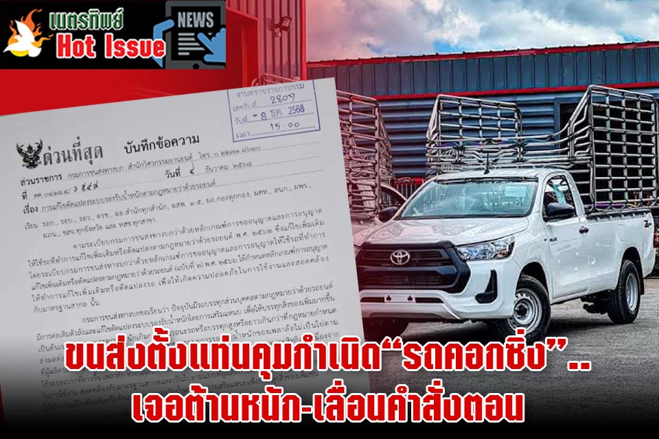 ขนส่งจ่อคุมกำเนิดรถบรรทุกคอกซิ่ง เสริมแหนบ 10 ชั้นบรรทุกหนัก ออกหนังสือแจ้งงดรับ-ต่อทะเบียน ก่อนออกประกาศแก้ไข เลื่อนการห้ามรถเสริมแหนบออกไปไม่มีกำหนด