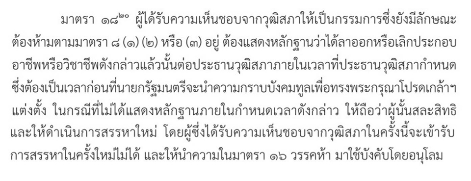 เช่นเดียวกับที่มาตรา 20 กำหนดให้การพ้นจากตำแหน่ง ต้องมีพระบรมราชโองการให้พ้นจากตำแหน่ง โดยให้มีผลย้อนหลังตั้งแต่วันที่ขาดคุณสมบัติหรือฝ่าฝืนกฎหมาย