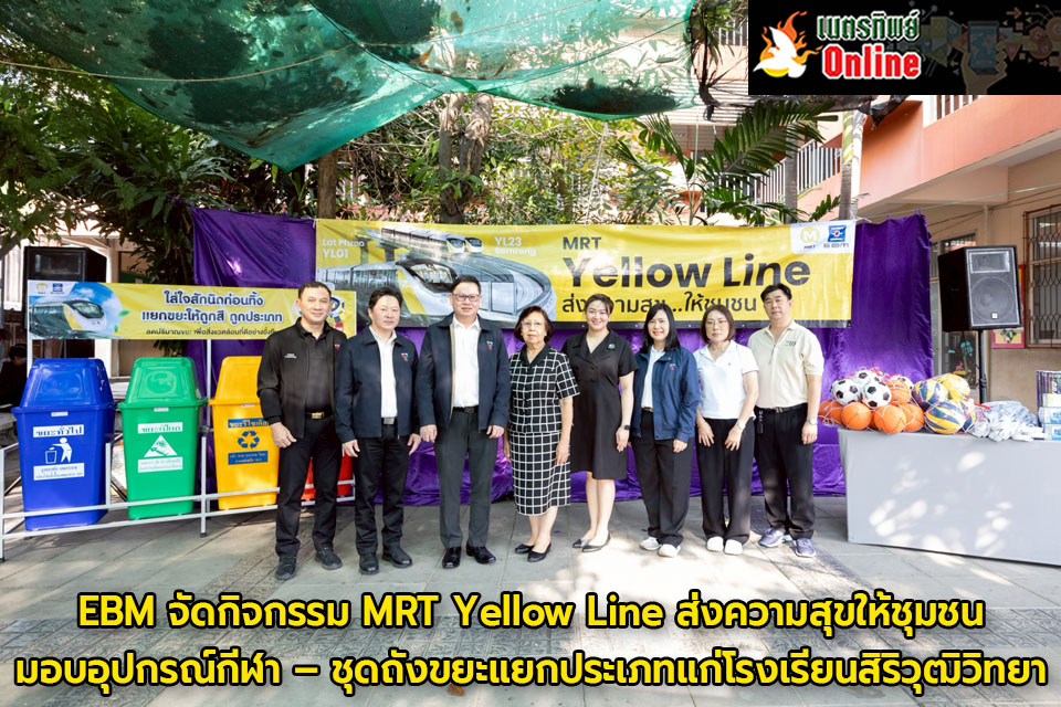 นายราชิต รักษาสัตย์ ผู้อำนวยการฝ่ายซ่อมบำรุง และนายธวัชชัย พานิชยากรณ์ ผู้อำนวยการฝ่ายปฏิบัติการ สายสีชมพู และ สายสีเหลือง บริษัท อีสเทิร์น บางกอกโมโนเรล จำกัด (EBM) ผู้รับสัมปทาน รถไฟฟ้ามหานคร สายนัคราพิพัฒน์ (สายสีเหลือง) นำคณะผู้บริหาร และพนักงาน จัดกิจกรรม MRT Yellow Line ส่งความสุขให้ชุมชน ณ โรงเรียนสิริวุฒิวิทยา จังหวัดสมุทรปราการ โดยมี นางสาวไฉไล วูติวัตต์ ผู้อำนวยการ และนางสาวพัดชา วูติวัตต์ ผู้จัดการ โรงเรียนสิริวุฒิวิทยา ให้การต้อนรับ