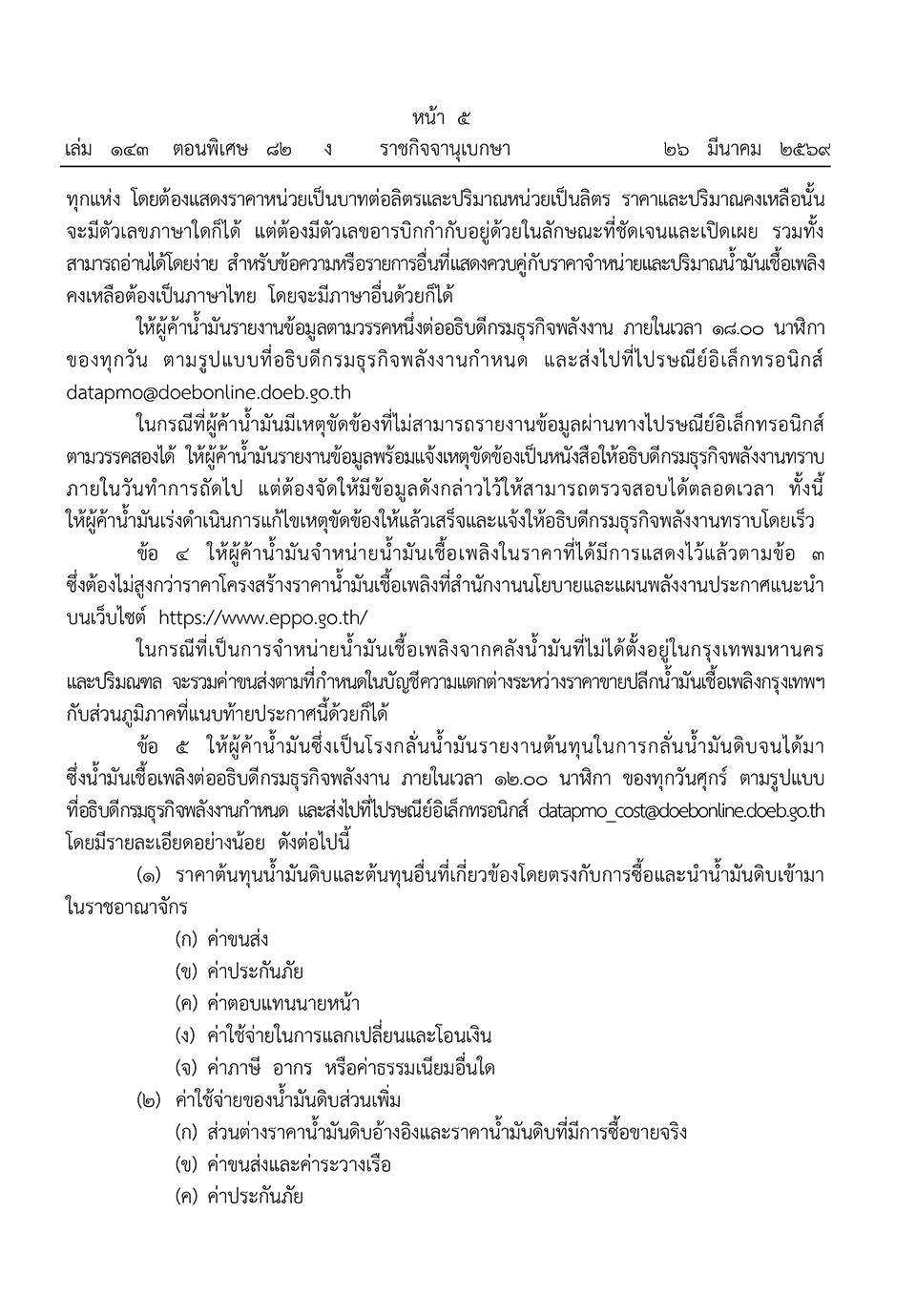 4. โรงกลั่นต้องรายงานต้นทุนการผลิต
