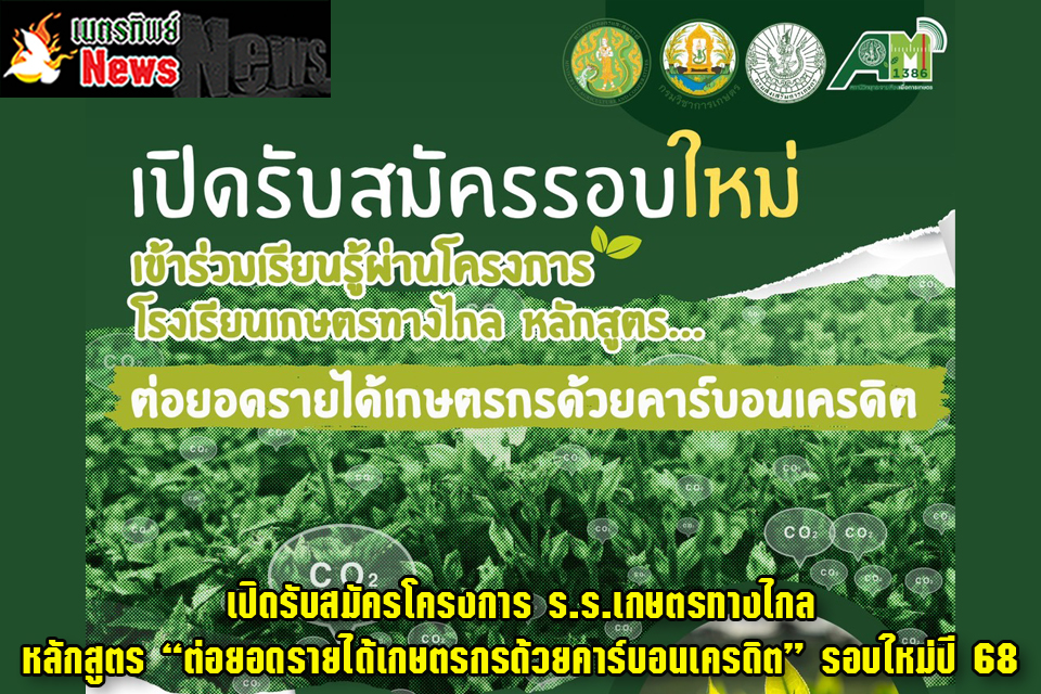 เปิดรับสมัครโครงการ ร.ร.เกษตรทางไกล หลักสูตร “ต่อยอดรายได้เกษตรกรด้วยคาร์บอนเครดิต” รอบใหม่ปี 68 -