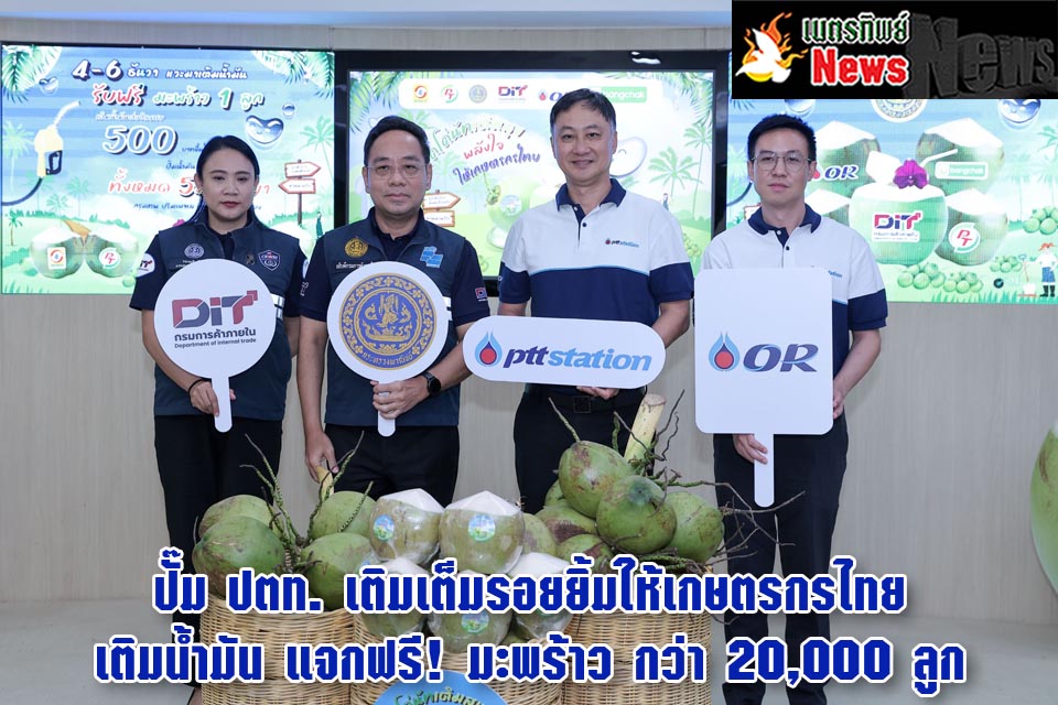 ปั๊ม ปตท. เติมเต็มรอยยิ้มให้เกษตรกรไทย เติมน้ำมัน แจกฟรี! มะพร้าว กว่า 20,000 ลูก -