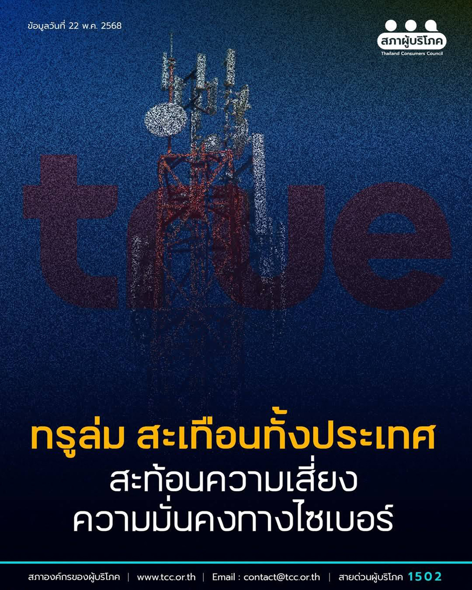 กรณีระบบอินเทอร์เน็ตของทรูล่มทั่วประเทศ เมื่อวันที่ 22 พฤษภาคม 2568 ตั้งแต่เวลาประมาณ 10.00 น. เป็นต้นมา ส่งผลให้ผู้ใช้งานจำนวนมากไม่สามารถติดต่อสื่อสารหรือใช้งานบริการต่าง ๆ ได้ ทั้งมือถือ อินเทอร์เน็ตบ้าน และแอปพลิเคชันที่ต้องอาศัยการเชื่อมต่อผ่านเครือข่ายทรู ไม่ว่าจะเป็นการติดต่อทางธุรกิจในประเทศและระหว่างประเทศ การนัดหมาย การติดต่อในภาวะฉุกเฉิน การโอนเงิน การเรียนออนไลน์ การทำงานทางไกล และระบบจองบริการต่าง ๆ