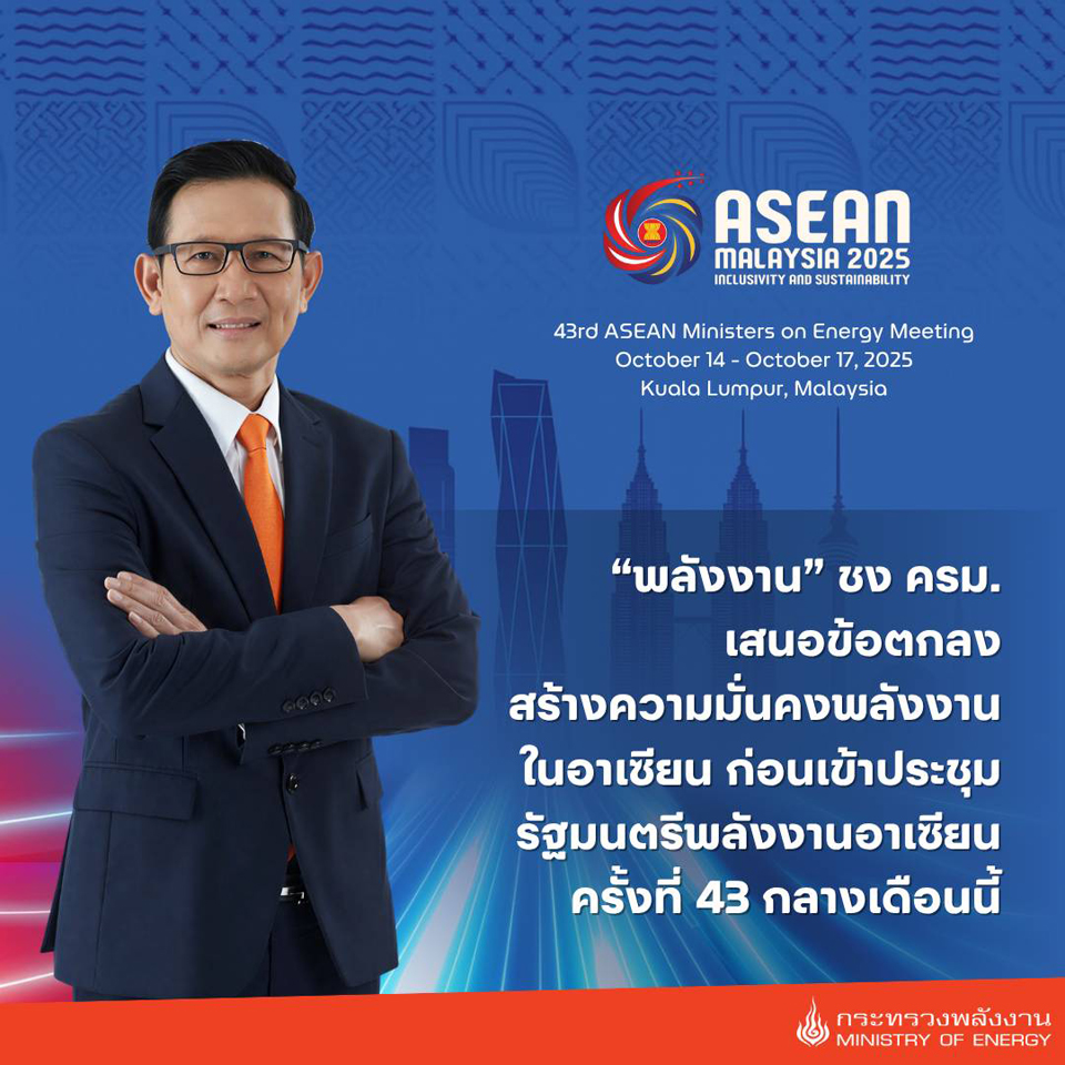 “ประเทศไทย เป็นประเทศนำเข้าพลังงานสุทธิ การสร้างความมั่นคงทางพลังงาน จึงเป็นเรื่องที่สำคัญ และการที่มีความร่วมมือกับประเทศสมาชิกอาเซียน ก็เป็นหนึ่งในมาตรการที่กระทรวงพลังงานให้ความสำคัญมาอย่างต่อเนื่อง ซึ่งจากทั้ง 2 ข้อตกลงข้างต้นที่กระผมจะเป็นผู้แทนจากประเทศไทยไปลงนามในการประชุมรัฐมนตรีอาเซียนด้านพลังงาน ครั้งที่ 43 หรือ AMEM ซึ่งกำหนดจัดขึ้นระหว่างวันที่ 16 - 17 ตุลาคม 2568 ณ กรุงกัวลาลัมเปอร์ สหพันธรัฐมาเลเซีย นับเป็นกลไกสำคัญในการแสวงหาความร่วมมือจากประเทศสมาชิกที่มีศักยภาพในการแบ่งปันน้ำมัน ก๊าซธรรมชาติ และการเชื่อมโยงด้านไฟฟ้า รวมทั้งส่งเสริมให้เกิดการลงทุนและสร้างรายได้จากการซื้อขายไฟฟ้าข้ามพรมแดน และเป็นประโยชน์ต่อการพัฒนาเศรษฐกิจและดึงดูดนักลงทุนที่ต้องการใช้ไฟฟ้าที่ผลิตจากพลังงานสะอาดในการดำเนินธุรกิจในประเทศไทยอีกด้วย”