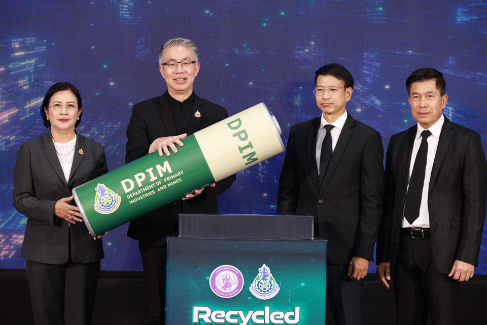 เป็นที่น่ายินดีเป็นอย่างยิ่งที่ในปีนี้ กพร. ประสบความสำเร็จในการพัฒนา “ต้นแบบแบตเตอรี่ EV จากการรีไซเคิล” ได้สำเร็จเป็นครั้งแรก ซึ่งจะช่วยให้ กพร. เป็น “ศูนย์การเรียนรู้ด้านเทคโนโลยีรีไซเคิลแบตเตอรี่ยานยนต์ไฟฟ้า” เพื่อรองรับการเติบโตของอุตสาหกรรมยานยนต์ไฟฟ้าและการจัดการแบตเตอรี่ยานยนต์ไฟฟ้าใช้งานแล้ว ที่จะมีปริมาณเพิ่มขึ้นจากหลักพันตันต่อปีเป็นหลักหมื่นตันต่อปี ภายในระยะ 5-6 ปีข้างหน้า ซึ่งเป็นกลไกสำคัญในการส่งเสริมอุตสาหกรรมศักยภาพแห่งอนาคต (S-Curve) ของไทย และขับเคลื่อนเศรษฐกิจของประเทศไปสู่เศรษฐกิจหมุนเวียนและสังคมคาร์บอนต่ำของรัฐบาล โดยงานในวันนี้ได้ปลดล็อกเส้นทางสู่เศรษฐกิจหมุนเวียน