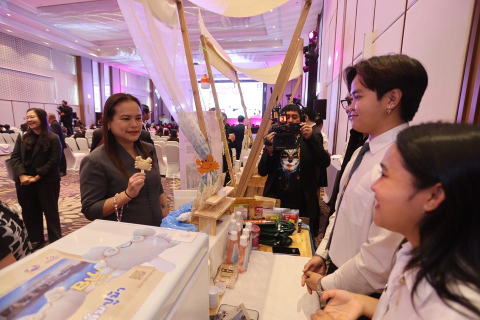 นางลภาวรรณ จันทร์กระจ่าง รองผู้อำนวยการธนาคารออมสิน รักษาการแทนผู้อำนวยการธนาคารออมสิน เปิดเผยว่า ธนาคารออมสินเดินหน้าภารกิจ “ธนาคารเพื่อสังคม” ผ่านการพัฒนาชุมชนอย่างยั่งยืนในปีที่ 9 กับโครงการ “ออมสินยุวพัฒน์รักษ์ถิ่น” ที่มุ่งสร้างความเข้มแข็งให้ชุมชนทั่วประเทศ ด้วยการอาศัยศักยภาพและพลังของเยาวชนในการนำไอเดีย ความรู้ เทคนิค และนวัตกรรมที่ได้จากห้องเรียน ไปผสานกับภูมิปัญญาชุมชน เพื่อยกระดับผลิตภัณฑ์และบริการให้เหมาะกับตลาดยุคใหม่ สะท้อนบทบาทของธนาคารในการผลักดันให้ชุมชนเติบโตอย่างมั่นคงด้วยศักยภาพของตนเอง ซึ่งเป็น 1 ใน 4 ภารกิจเชิงยุทธศาสตร์ของการเป็นธนาคารเพื่อสังคม
