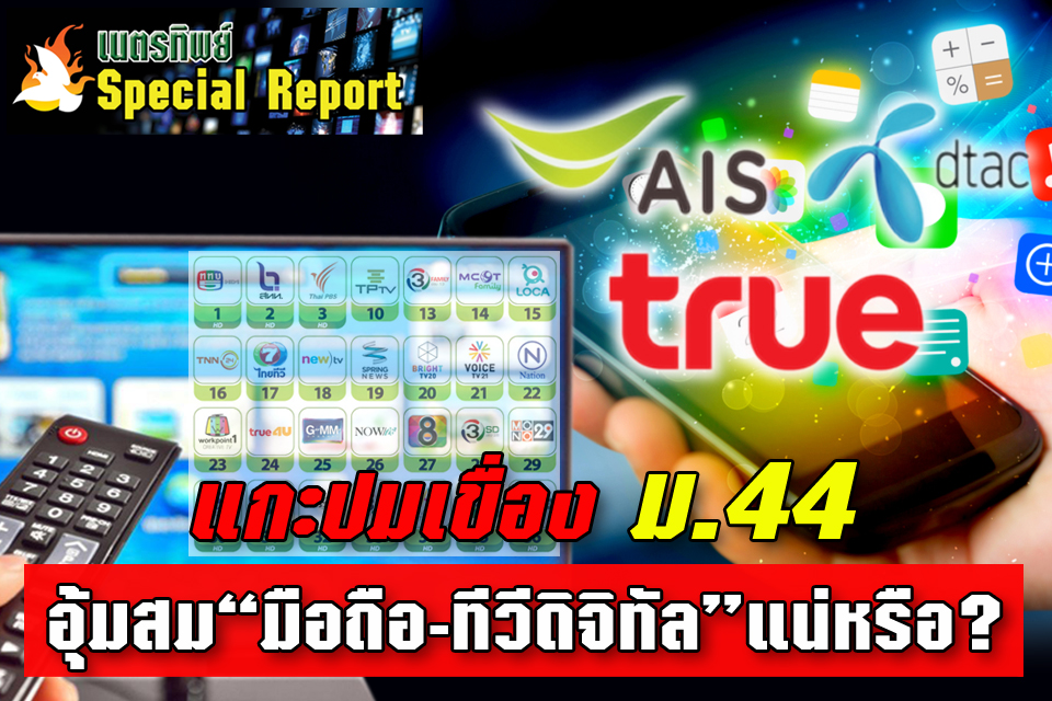 There is no free lunch..โลกนี้ไม่มีอะไรได้มาฟรี! วลีทางเศรษฐศาสตร์ที่ยังคงใช้ได้มาทุกยุคสมัย โลกนี้ไม่มีอะไรได้มาฟรี แม้แต่อากาศธาตุที่บริสุทธิ์ก็ยังต้องอนุรักษ์รักษาธรรมชาติและสิ่งแวดล้อม จึงจะได้มันมา กรณีคำสั่ง ม.44 ของนายกรัฐมนตรี และหัวหน้า คสช. ที่ออกมาตรการเพื่อช่วยเหลือผู้ประกอบการทีวีดิจิตอล ที่กำลังหืดจับหายใจไม่ทั่วท้อง แถมพ่วงด้วยมาตรการอุ้มสมผู้ประกอบการมือถือนั้นก็เข่นกัน นักวิชาการและเครือข่ายเอ็นจีโอในหลายภาคส่วน เลือกที่จะหยิบยกแต่กรณีการอุ้มสม “ทีวีดิจิทัล” ว่าเป็นเรื่องที่เหมาะสม ด้วยเห็นว่า ผู้ประกอบการเหล่านี้ต่างอยู่ในสภาพ "หืดจับหายใจไม่ทั่วท้อง" จากการเปลี่ยนแปลงทางเทคโนโลยีที่กำลังไหลบ่า และสภาพการแข่งขันที่รุนแรง รายที่สายป่านสั้นก็เก็บกระเป๋ากลับบ้านเก่ากันไปแล้วก็มี ส่วนมาตรที่อุ้มสมผู้ประกอบการ ”มือถือ” ที่จะให้ยืดหนี้ค่าต๋งประมูลเพื่อออกใบอนุญาตออกไปเป็น 10 ปี จากที่จ่ายมาแล้ว 4 งวด 4 ปี หรือเท่ากับยืดหนี้ให้อีก 6 ปีโดยไม่คิดดอกเบี้ยนั้น ดูจะเป็นเรื่องที่ยอมไม่ได้ ถือเป็นการออก ม. 44 ที่ไร้ความรับผิดชอบ ขัดเจตนารมณ์ของการออก ม.44 อย่างชัดแจ้ง บ้างก็ว่าเป็นมาตรการอุ้มสมเศรษฐีหรือต่างชาติที่ถือหุ้นใหญ่ธุรกิจมือถือเหล่านี้ ก็ไม่รู้เจตนารมณ์ในการออก ม.44 นั้นกำหนดตายตัวเอาไว้ยังไง ถึงจะกำหนดกะเกณฑ์ให้หัวหน้า คสช. ต้องทำอย่างนั้นอย่างนี้ได้ เพราะวันดีคืนดี ก็เห็นหัวหน้า คสช. งัด ม.44 ไล่ปลดข้าราชการ เจ้าหน้าที่รัฐกันเป็นว่าเล่นก็มี แต่อย่างที่กล่าวมา "โลกนี้ไม่มีอะไรได้มาฟรี" มาตรการช่วยเหลือทีวีดิจิทัลตามคำสั่ง ม.44 นี้ก็เช่นกัน พบว่า “ได้ผูกเงื่อนไขที่ยากจะแกะออกมาอย่างเป็นเอกเทศ” ประเภทที่จะให้หัวหน้า คสช. ทบทวนหรือรื้อมาตรการหนึ่งมาตรการใดทิ้งไป เพราะหากจะฉีกทิ้งมาตรการยืดหนี้ให้กับผู้ประกอบการมือถือ แน่นอนว่า ในสภาวะที่ผู้ประกอบการเหล่านี้ต้องแบกรับหนี้ค่าประมูลคลื่นเดิมทีเต็มเพดานก่อหนี้ จนไม่อยู่ในวิสัยที่จะกู้เพิ่มหรือเปิดวงเงินกู้จากสถาบันการเงินเพิ่มเติมได้อีกนั้น ก็ยากที่จะคาดหวังให้ผู้ประกอบการเหล่านี้เข้าร่วมประมูลคลื่น 700 อันเป็นคลื่นพื้นฐานสำหรับเครือข่าย 5G ที่จะครอบคลุมทั้งประเทศได้ เช่นเดียวกัน หากผู้ประกอบการมือถือเข้าร่วมประมูลคลื่น 700 เมกกะเฮิรตซ์ ต่ำกว่าเป้าหมาย เช่นเข้าประมูลเพียง 1 ราย ก็ย่อมจะส่งผลกระทบต่อมาตรการเยียวยาทีวีดิจิตอลตามมาเช่นกัน โดยอาจจะได้รับการยืดหนี้ค่าธรรมเนียมรายปีออกไปเท่านั้น โดยไม่ได้รับการลด