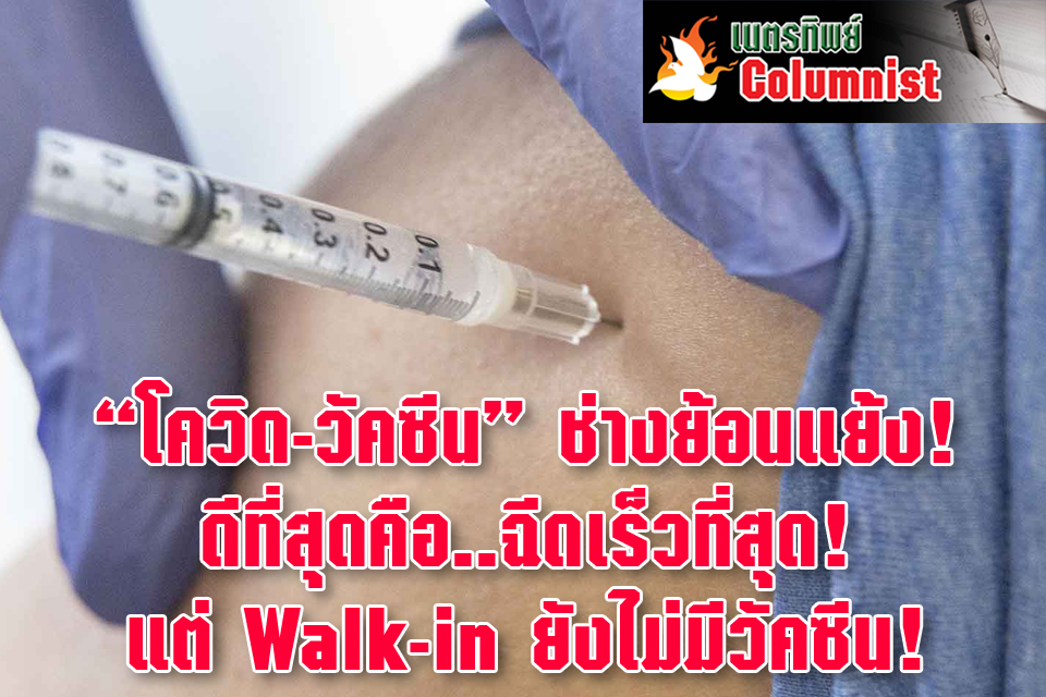 แต่พอคนไทยอยากจะขอแบบ “วอล์ค อิน” ฉีดวัคซีน ได้มั๊ย? พล.อ.ประยุทธ์ จันทร์โอชา นายกรัฐมนตรี และ ผอ.ศบค. (ศูนย์ปราบโควิด) บอกว่ายัง “วอล์ค อิน” ไม่ได้!