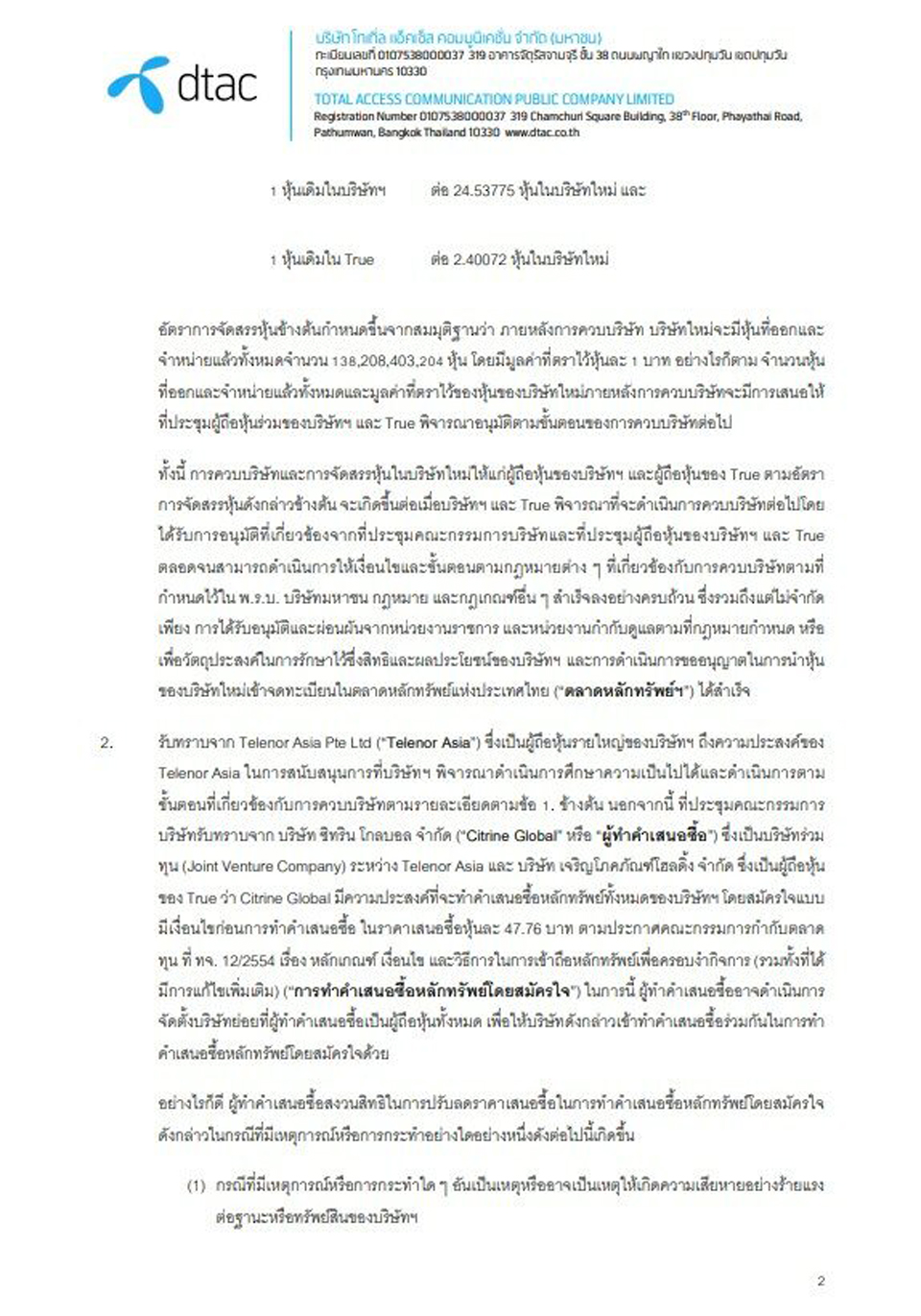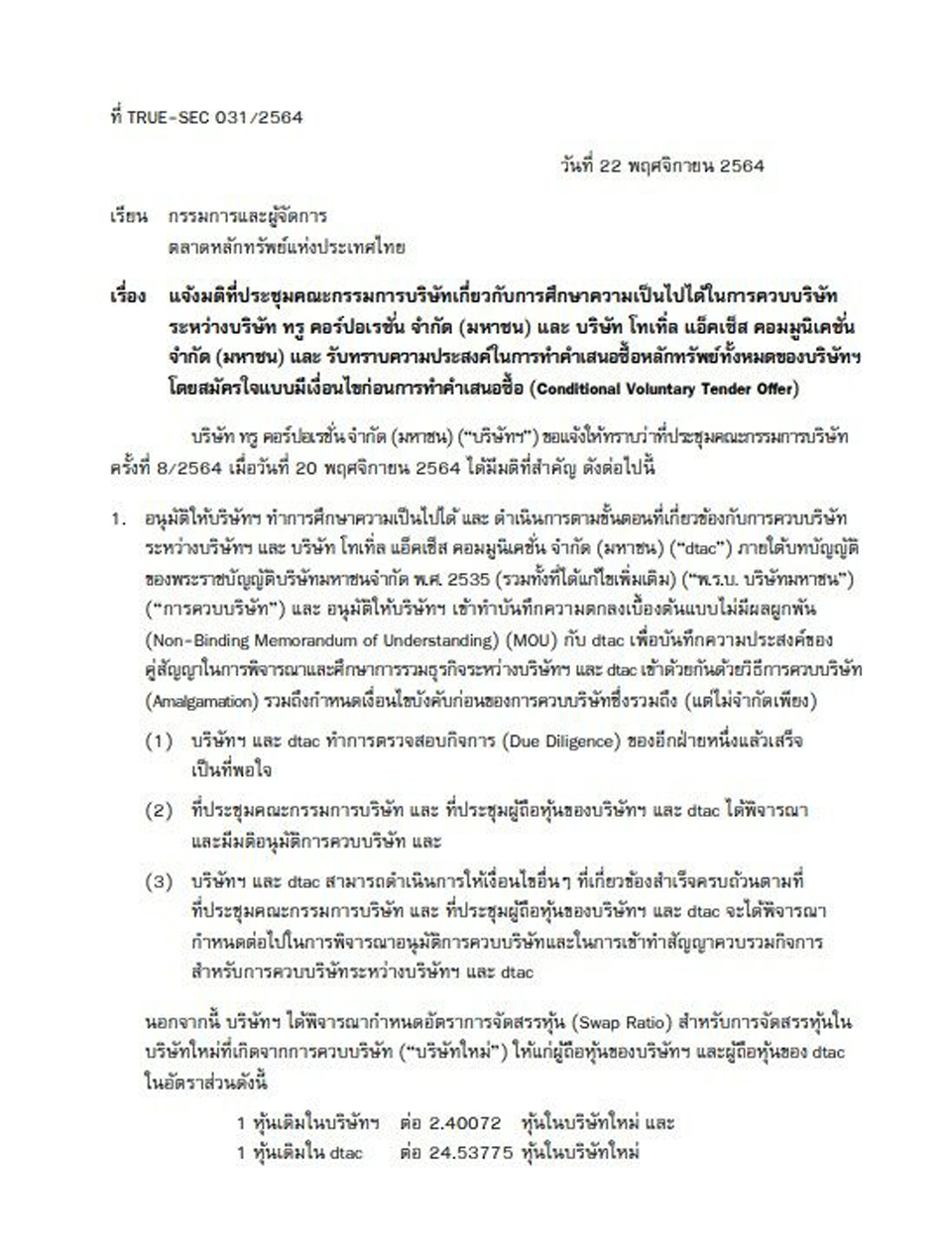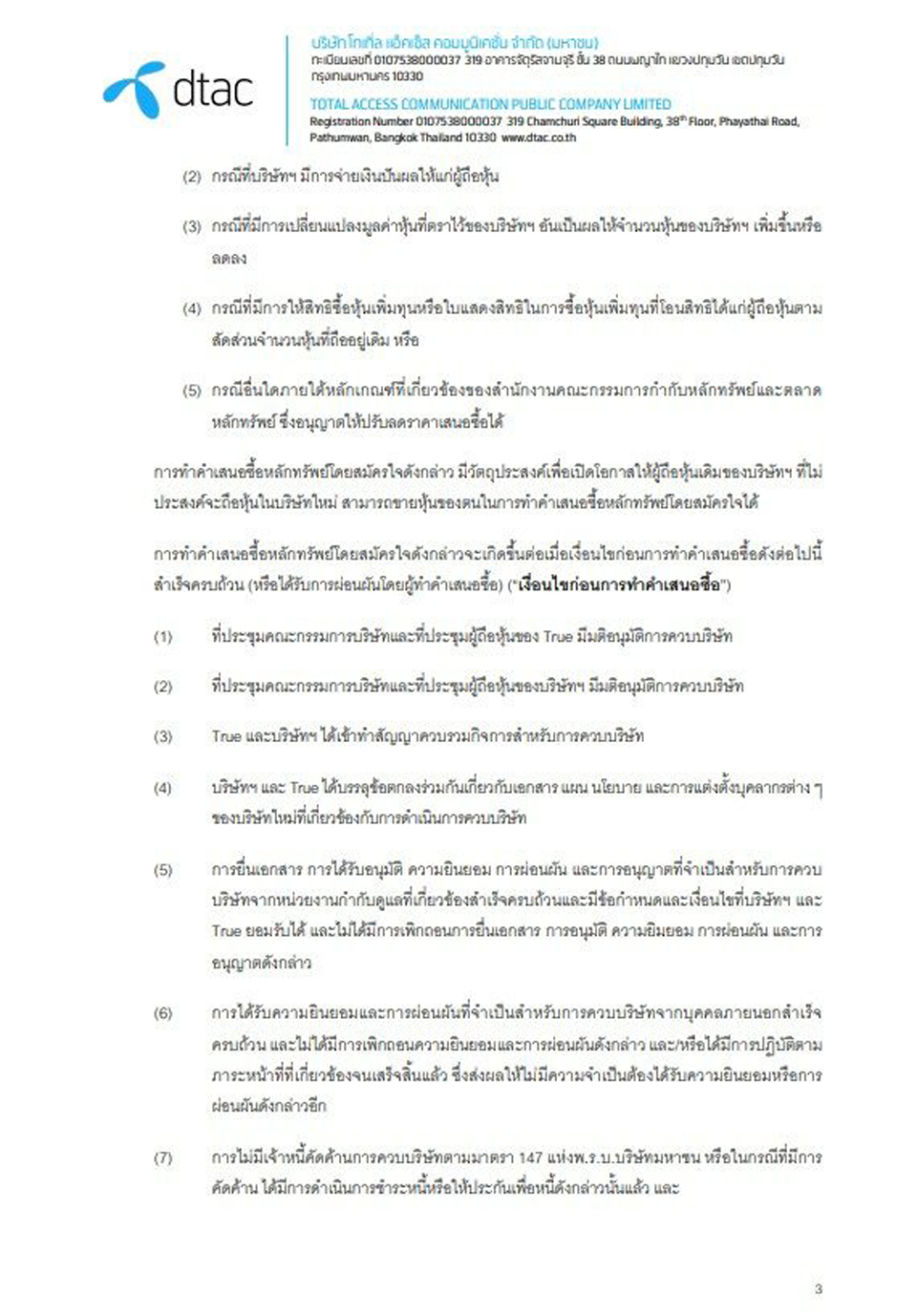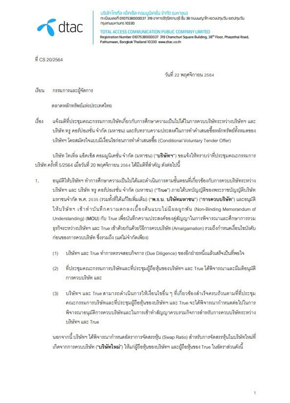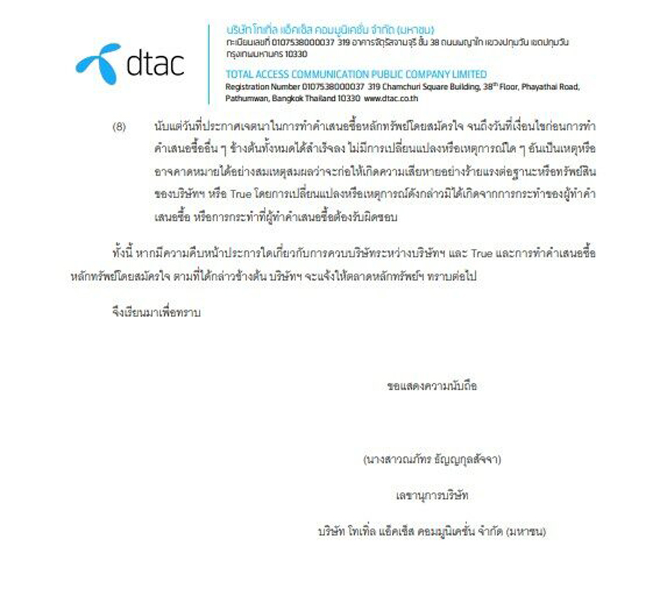 ไม่ว่าจะด้วยเหตุผลใดก็ตาม ที่ตัวแทนกลุ่มทรูและดีแทค นำมายกอ้างถึงแนวคิดและแนวทางในการควบรวมกิจการระหว่างกัน เพื่อสร้างธุรกิจใหม่ ให้สอดประสานกับสถานการณ์โลกที่มีวิวัฒนาการของเทคโนโลยีได้อย่างรวดเร็ว เปลี่ยนแปลงกันไปชนิดนาทีต่อนาที