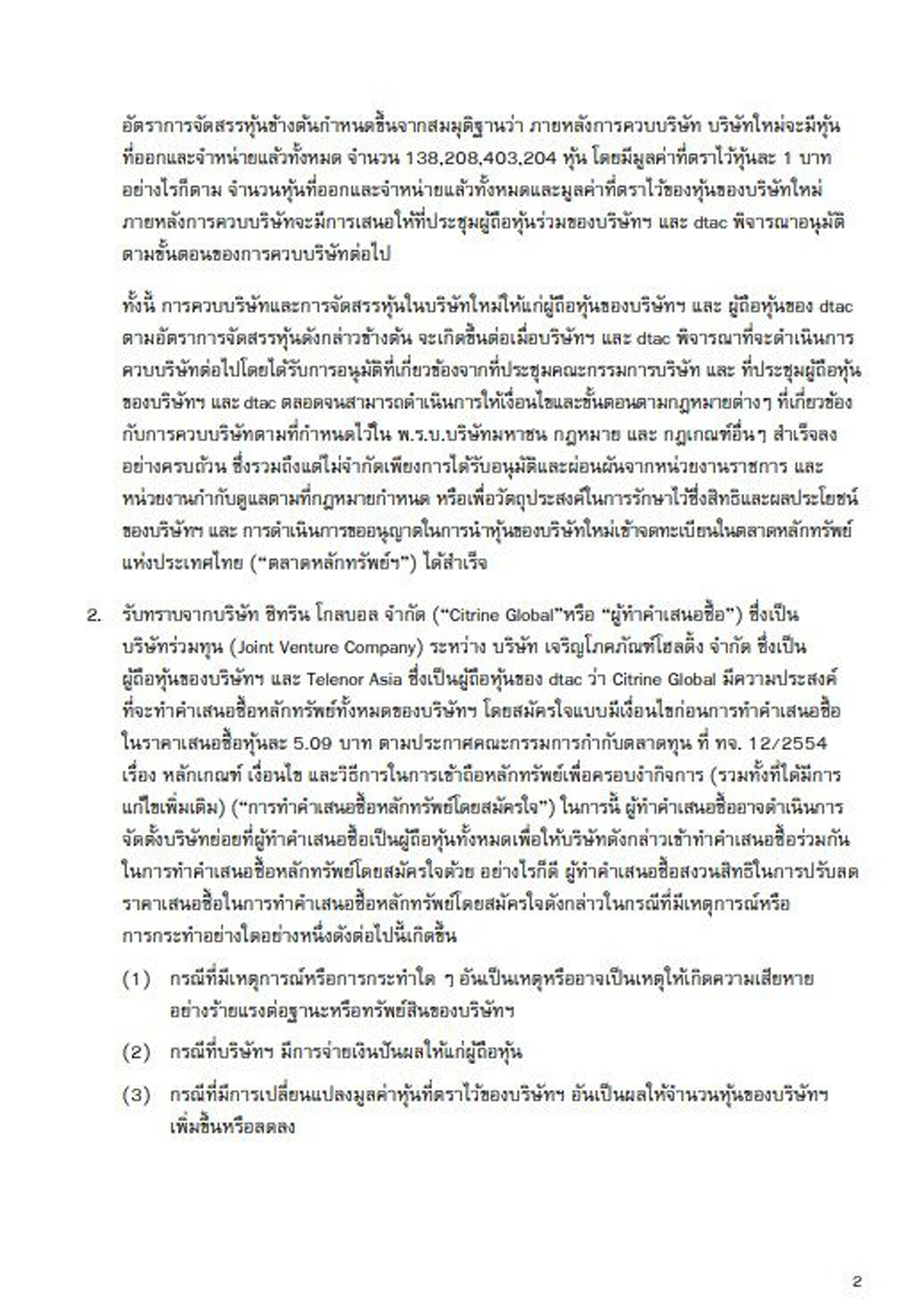 และ 2. เมื่อมีการรวมธุรกิจแล้ว อาจก่อให้เกิดการแข่งขันลดลงอย่างมีนัยสําคัญ ต้องแจ้งให้ กขค. ทราบภายใน 7 วันนับแต่วันที่รวมธุรกิจ โดย กขค.ได้กําหนดหลักเกณฑ์ไว้ว่า เป็นการรวมธุรกิจที่มียอดเงินขาย ในตลาดตั้งแต่ 1,000 ล้านบาทขึ้นไป และไม่ก่อให้เกิดการผูกขาด หรือ เป็นผู้ประกอบธุรกิจซึ่งมีอํานาจเหนือตลาด