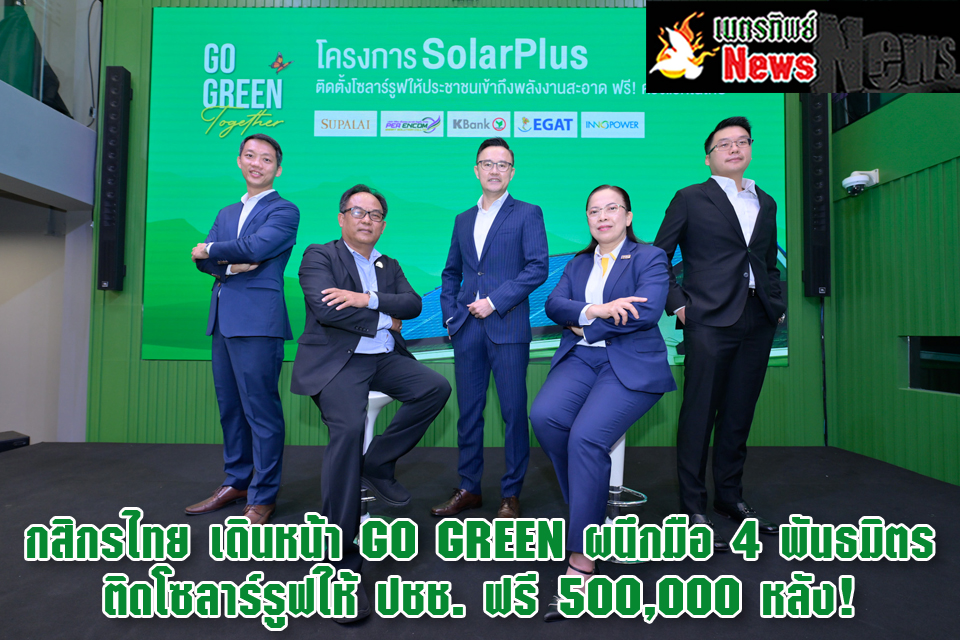 ธนาคารกสิกรไทย จับมือ 4 พันธมิตร ได้แก่ การไฟฟ้าฝ่ายผลิตแห่งประเทศไทย บริษัท พีอีเอ เอ็นคอม สมาร์ท โซลูชั่น จำกัด บริษัท ศุภาลัย จำกัด (มหาชน) และบริษัท อินโนพาวเวอร์ จำกัด เดินหน้า GO GREEN Together สนับสนุนการใช้พลังงานสะอาดของประชาชน เปิดตัวโครงการ SolarPlus ติดตั้งโซลาร์รูฟให้แก่ประชาชนฟรี เพื่อผลิตและขายไฟฟ้าเป็นครั้งแรกในไทย นำร่องโครงการที่หมู่บ้านศุภาลัย ตั้งเป้าติดตั้ง 500,000 หลังทั่วประเทศ ภายใน 5 ปี เตรียมวงเงินสินเชื่อให้แก่ผู้ลงทุน 50,000 ล้านบาท คาดว่าจะสามารถลดการปล่อยก๊าซเรือนกระจกลงได้ 2.3 ล้านตันคาร์บอนไดออกไซด์เทียบเท่าต่อปี เพื่อสนับสนุนให้คนไทยเปลี่ยนมาใช้พลังงานสะอาดสู่การเป็น Net Zero ตามเป้าหมายของประเทศ