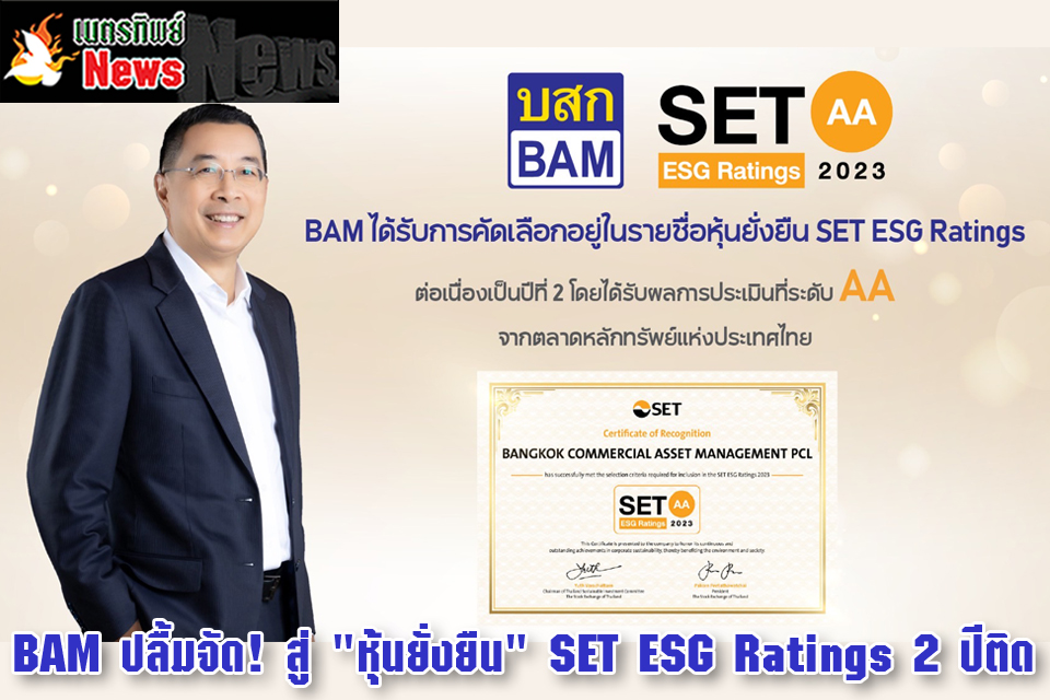 ผู้สื่อข่าวรายงานว่า บริษัทบริหารสินทรัพย์ กรุงเทพพานิชย์ จำกัด (มหาชน) หรือ BAM ได้รับการประเมินหุ้นยั่งยืน “SET ESG Rating” ในระดับ AA ประจำปี 2566 จากตลาดหลักทรัพย์แห่งประเทศไทย โดยเป็น 1 ใน 193 บริษัทจดทะเบียนที่ได้รับการประกาศผลประเมินหุ้นยั่งยืน SET ESG Ratings สะท้อนให้เห็นว่า BAM ให้ความสำคัญต่อการดำเนินธุรกิจอย่างยั่งยืน โดยยกระดับการดำเนินงานและการจัดทำรายงานความยั่งยืนภายใต้กรอบ ESG (Environmental, Social and Governance) ในมิติเศรษฐกิจ มิติธรรมาภิบาล มิติสิ่งแวดล้อม มิติผู้คนและสิทธิมนุษยชน เป็นบริษัทที่มีการนำแนวคิดด้านความยั่งยืนเข้าเป็นส่วนหนึ่งในกระบวนการดำเนินธุรกิจ อีกทั้งพร้อมรับมือกับปัจจัยการเปลี่ยนแปลงด้านสังคมและสิ่งแวดล้อมและให้ความสำคัญกับผู้มีส่วนได้เสียทุกภาคส่วนได้อย่างสมดุล