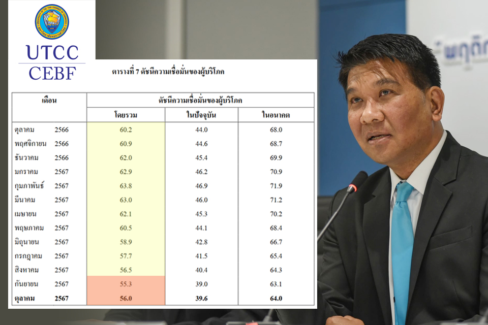 เมื่อวันที่ 14 พ.ย. 67 นายธนวรรธน์ พลวิชัย อธิการบดีมหาวิทยาลัยหอการค้าไทย และประธานที่ปรึกษาศูนย์พยากรณ์เศรษฐกิจและธุรกิจ เปิดเผยว่า จากการสำรวจตัวอย่างประชาชนทั่วประเทศจำนวน 2,242 คน พบว่า ดัชนีความเชื่อมั่นของผู้บริโภคเดือน ต.ค. 67 จาก ระดับ 55.3 เป็น 56.0 เป็นการปรับตัวดีขึ้นเป็นครั้งแรกในรอบ 8 เดือน นับตั้งแต่เดือน มี.ค. 67 เป็นต้นมา