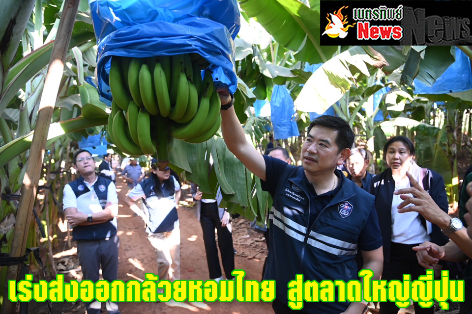 ผู้สื่อข่าวรายงานว่า เมื่อวันที่ 13 กุมภาพันธ์ 2568 นายคุณากร ปรีชาชนะชัย ที่ปรึกษารัฐมนตรีว่าการกระทรวงพาณิชย์ เปิดเผยว่า “ผมได้รับมอบหมายจากท่านพิชัย นริพทะพันธุ์ รัฐมนตรีว่าการกระทรวงพาณิชย์ ให้มาลงพื้นที่ติดตามสถานการณ์การปลูกกล้วยหอมทองเพื่อส่งออกไปประเทศญี่ปุ่น โดยหลังจากที่คณะท่านรัฐมนตรีฯ ได้เดินทางไปญี่ปุ่นเพื่อติดตามการส่งออกกล้วยของไทยเมื่อเดือนธันวาคมปีที่ผ่านมา และได้สั่งการให้มีการเพิ่มปริมาณผลผลิตในพื้นที่เนื่องจากตลาดญี่ปุ่นยังต้องการกล้วยหอมของไทยเป็นอย่างมาก ผมจึงได้นำคณะกระทรวงพาณิชย์ นายจิรวัฒน์ อรัณยกานนท์ เลขานุการรัฐมนตรีว่าการกระทรวงพาณิชย์ และ นายวิทยากร มณีเนตร อธิบดีกรมการค้าภายใน พร้อมด้วยคณะผู้แทนจากญี่ปุ่น ประกอบด้วย ผู้อำนวยการสำนักงานส่งเสริมการค้าในต่างประเทศ ณ กรุงโตเกียว ผู้เชี่ยวชาญด้านกล้วยจากญี่ปุ่น และบริษัทผู้นำเข้าผลไม้สดและผลไม้แปรรูปจากญี่ปุ่น มาติดตามสถานการณ์และรับทราบปัญหาหลังจากที่ไทยได้ตกลงส่งออกกล้วยหอมทองไปยังญี่ปุ่นในปริมาณ 5,000 ตัน แต่ไม่สามารถส่งออกผลผลิตได้ตามเป้าหมาย ทุกหน่วยจึงต้องร่วมกันหาแนวทางในการผลักดันการส่งออกให้มากขึ้น”