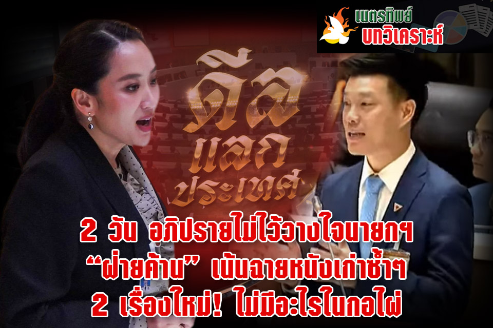 พรรคร่วมฝ่ายค้าน ที่มีพรรคประชาชนเป็นแกนนำเปิดศึกอภิปรายไม่ไว้วางใจนายกรัฐมนตรี น.ส.แพทองธาร ชินวัตร มา 2 วัน 1 คืน ด้วยแคมเปญ “ดีลแลกประเทศ” ภายใต้รัฐบาลที่ดีลกันบนผลประโยชน์ของชนชั้นนำ เหยียบย่ำเสียงของประชาชน คนไทยต้องสูญเสียไปเท่าไร เพื่อให้คนบางคนได้กลับบ้าน ประเทศเสียหายไปแค่ไหน เพื่อให้ น.ส.แพทองธาร ได้เป็นนายกฯ หุ่นเชิดของนายทักษิณ ชินวัตร อดีตนายกฯ และเป็นนายกฯ ที่ถูกครอบงำโดยผู้เป็นพ่อ