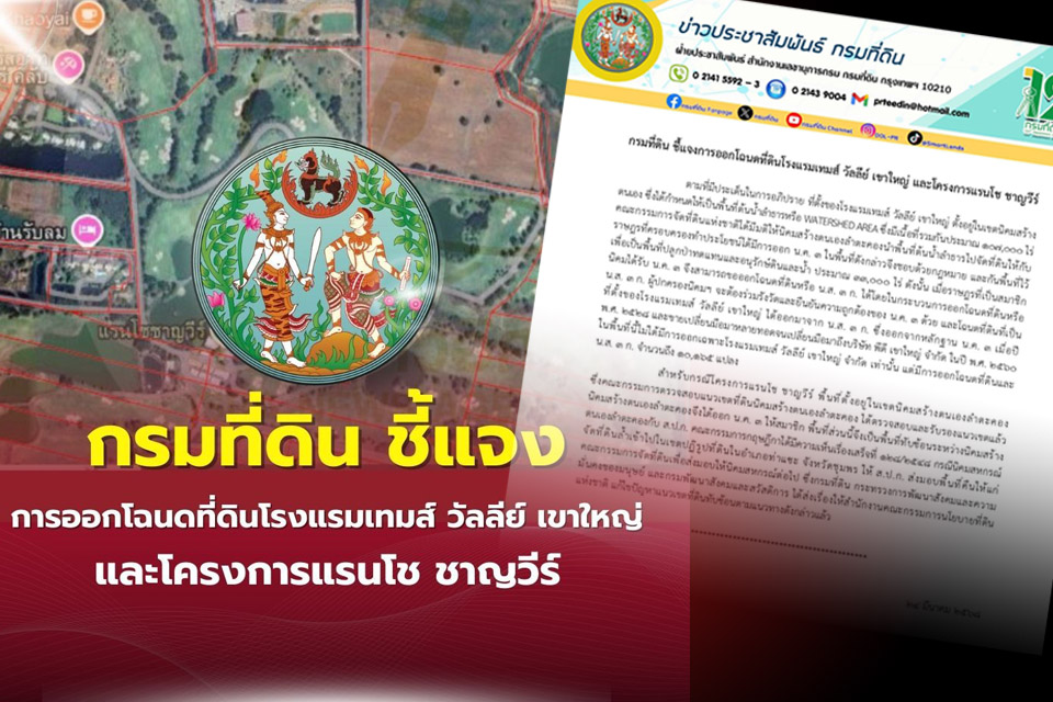 ขณะที่กรมที่ดิน ชี้แจงเรื่องโฉนดที่ดินว่า คณะกรรมการจัดที่ดินแห่งชาติได้มีมติให้นิคมสร้างตนเองลำตะคอง อ.ปากช่อง นำพื้นที่ต้นน้ำลำธารไปจัดที่ดินให้กับราษฎรที่ครอบครองทำประโยชน์ได้มีการออก น.ค.3 ในพื้นที่ดังกล่าวจึงชอบด้วยกฎหมาย และกันพื้นที่ไว้เพื่อเป็นพื้นที่ปลูกป่าทดแทนและอนุรักษ์ดินและน้ำ ประมาณ 33,000 ไร่