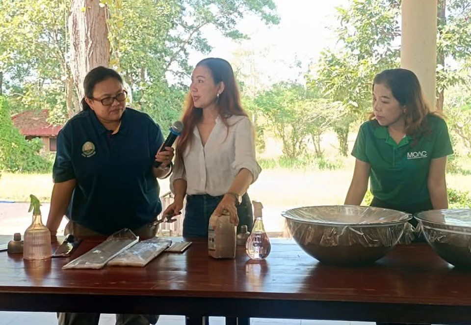 ดร.สุรีย์พร บัวอาจ นักวิชาการโรคพืชชำนาญการพิเศษ สำนักวิจัยพัฒนาการอารักขาพืช ให้ข้อมูลว่า โรครากเน่าและโคนเน่าในทุเรียน มีสาเหตุมาจากเชื้อราไฟทอปธอร่า (Phytophthora palmivora) ซึ่งสามารถแพร่กระจายในดินและเข้าทำลายราก ตลอดจนลำต้นของต้นทุเรียน ทำให้ต้นอ่อนแอ ใบเหลือง ร่วง และอาจถึงขั้นยืนต้นตายหากไม่ได้รับการป้องกันอย่างเหมาะสม โรคนี้นับเป็นปัญหาสำคัญที่ส่งผลกระทบต่อการผลิตทุเรียนอย่างรุนแรง สร้างความเสียหายเป็นวงกว้าง ทั้งในแง่ของผลผลิตและรายได้ของเกษตรกร ในขณะที่เทคโนโลยีการใช้เห็ดเรืองแสงสิรินรัศมี ได้รับการยอมรับอย่างกว้างขวางจากทั้งนักวิชาการและเกษตรกร เนื่องจากมีขั้นตอนการผลิตที่ง่าย ไม่ซับซ้อน และสามารถนำไปใช้ทดแทนสารเคมีได้อย่างมีประสิทธิภาพ