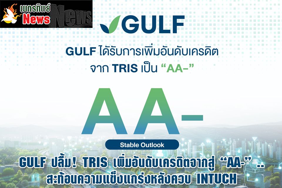 บริษัท กัลฟ์ ดีเวลลอปเมนท์ จำกัด (มหาชน) หรือ GULF ได้รับการปรับเพิ่มอันดับเครดิตองค์กรจาก “A+” เป็น “AA-” โดยบริษัท ทริสเรทติ้ง จำกัด (TRIS) พร้อมเพิ่มอันดับเครดิตหุ้นกู้ไม่ด้อยสิทธิ ไม่มีหลักประกันของบริษัทฯ เป็น “AA-” จาก “A” ด้วยแนวโน้มอันดับเครดิต “คงที่” การปรับเพิ่มอันดับเครดิตครั้งนี้สะท้อนถึงสถานะทางการเงินที่แข็งแกร่งขึ้นของ GULF ภายหลังการควบรวมกิจการกับบริษัท อินทัช โฮลดิ้งส์ จำกัด (มหาชน) (INTUCH) ตลอดจนกระแสเงินสดที่มั่นคง การกระจายการลงทุนอย่างมีประสิทธิภาพ และการได้รับเงินปันผลที่เพิ่มขึ้น โดยเฉพาะจากบริษัท แอดวานซ์ อินโฟร์ เซอร์วิส จำกัด (มหาชน) (ADVANC) นอกจากนี้ การควบรวมกิจการยังช่วยลดความซับซ้อนในการดำเนินงาน และเสริมสร้างศักยภาพร่วมกันระหว่างธุรกิจพลังงานและธุรกิจดิจิทัล