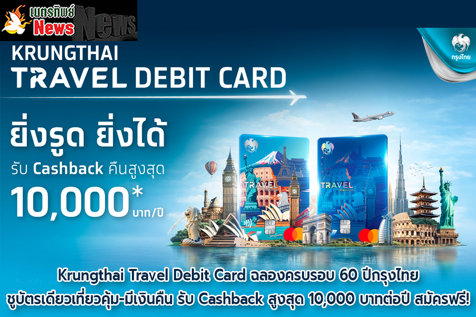 Krungthai Travel Debit Card ฉลองครบรอบ 60 ปีกรุงไทย ชูบัตรเดียวเที่ยวคุ้ม-มีเงินคืน รับ Cashback สูงสุด 10,000 บาทต่อปี สมัครฟรี!