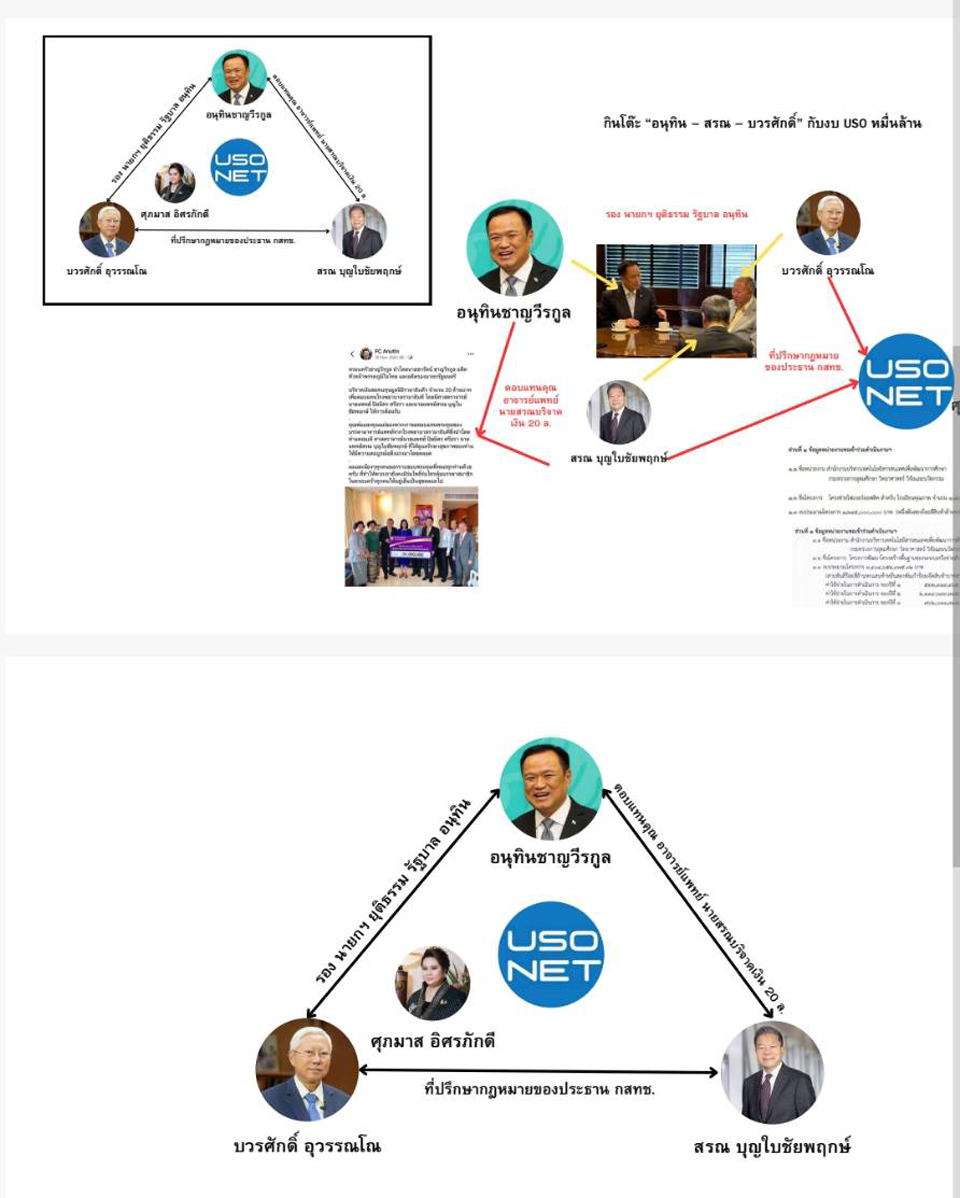 สิ่งที่อยู่ตรงกลาง คือ "กองทุน USO" ซึ่งปัจจุบันกำลังเข้าสู่การพิจารณา “แผน 4” โดยตัวเลขที่ถูกพูดถึงในเบื้องต้น คือ 9,000 ล้านบาท แต่ในความเป็นจริง มีการรวบรวมงบประมาณล่วงหน้า 3 ปี ทำให้เม็ดเงินพุ่งสูงถึง 24,000 ล้านบาท