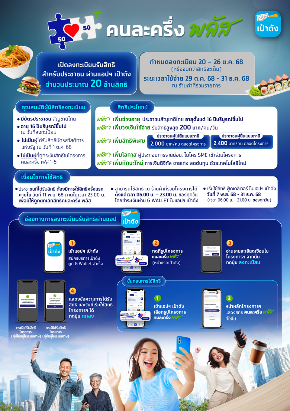 1. เว็บไซต์โครงการฯ: ติดตามรายละเอียดโครงการฯ และข้อมูลข่าวสารได้ทาง www.คนละครึ่งพลัส.com