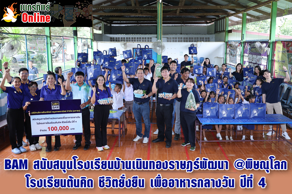 ว่าที่ร้อยตรี ภูวไนย จารุพันธุ์ ผู้อำนวยการฝ่ายพัฒนาสินทรัพย์ภาคเหนือตอนล่าง นายดนัย ด้วงเจริญ ผู้อำนวยการฝ่ายสื่อสารองค์กร นายสิงห์ สุขโท้ ผู้จัดการสำนักงานพิษณุโลก นายวรา สวัสดีผล ผู้จัดการสำนักงานนครสวรรค์ นางสาวชฎาภรณ์ วงศ์ชีวะ ผู้จัดการกลุ่มประชาสัมพันธ์ พร้อมพนักงาน บริษัทบริหารสินทรัพย์ กรุงเทพพาณิชย์ จำกัด (มหาชน) หรือ BAM มอบเงินสนับสนุนโครงการโรงเรียนต้นคิด ชีวิตยั่งยืน จำนวน 100,000 บาท ให้กับโรงเรียนบ้านเนินทองราษฎร์พัฒนา อำเภอวังทอง จังหวัดพิษณุโลก โดยมี นางชฑรัช วงษ์ยอด ผู้อำนวยการโรงเรียนเป็นผู้รับมอบ