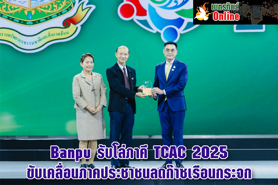 เมื่อเร็วๆ นี้ นายชัชพล อุตตมานนท์ Senior Vice President – Global Corporate Sustainability บริษัท บ้านปู จำกัด (มหาชน) (ตรงกลาง) รับมอบโล่องค์กรภาคี จาก ดร.พิรุณ สัยยะสิทธิ์พานิช อธิบดีกรม การเปลี่ยนแปลงสภาพภูมิอากาศและสิ่งแวดล้อม (ขวาสุด) ในฐานะองค์กรที่มีส่วนร่วมสนับสนุนการขับเคลื่อนภาคประชาชนโดยตรงในการดำเนินงานด้านการเปลี่ยนแปลงสภาพภูมิอากาศในพื้นที่ภายในงานการประชุมภาคีการขับเคลื่อนการปฏิบัติงานด้านการเปลี่ยนแปลงสภาพภูมิอากาศของไทย (Thailand Climate Action Conference: TCAC 2025) ครั้งที่ 4 ภายใต้แนวคิด “จุดประกายความคิด ร่วมพลิกวิกฤตโลกเดือด – Inspiring Climate Solutions for All”