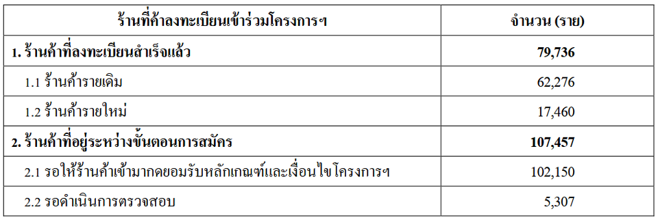จากข้อมูลสะสม ณ วันที่ 16 ตุลาคม 2568 เวลา 9.00 น. มีร้านค้าที่ลงทะเบียนเข้าร่วมโครงการฯ ดังตาราง