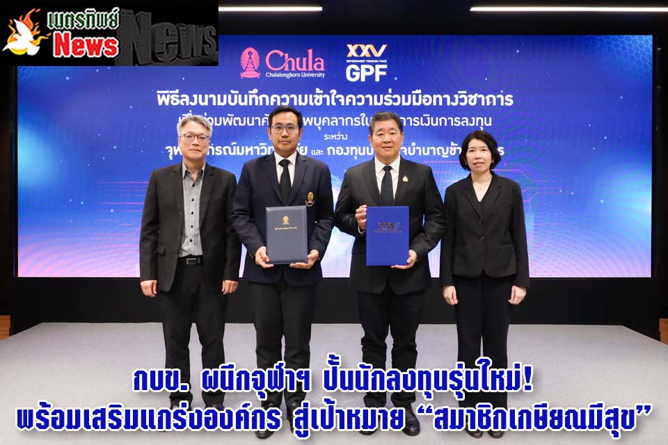 กบข. เดินหน้าสร้างความเชื่อมั่นในบทบาทองค์กรด้านการลงทุนเพื่อสังคม ผนึกกำลังจุฬาฯ พัฒนานิสิตรุ่นใหม่ที่มีศักยภาพ พร้อมต่อยอดนวัตกรรมสู่การยกระดับคุณภาพชีวิตสมาชิก เพื่ออนาคตการเกษียณมีสุข