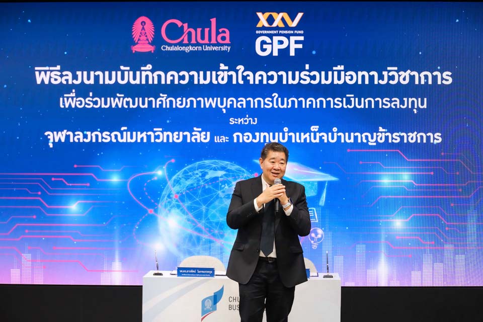 นายทรงพล ชีวะปัญญาโรจน์ เลขาธิการคณะกรรมการกองทุนบำเหน็จบำนาญข้าราชการ (กบข.) เปิดเผยว่า กบข. ได้ลงนามในบันทึกความเข้าใจความร่วมมือทางวิชาการ ร่วมกับคณะพาณิชยศาสตร์และการบัญชี จุฬาลงกรณ์มหาวิทยาลัย เพื่อร่วมกันส่งเสริมการพัฒนาความรู้ ทักษะ และประสบการณ์ของนิสิตในด้านการเงินการลงทุน โดยมุ่งหวังให้เกิดการต่อยอดสู่การพัฒนาบุคลากรคุณภาพที่ตอบโจทย์ภาคธุรกิจและสังคมไทยในอนาคต