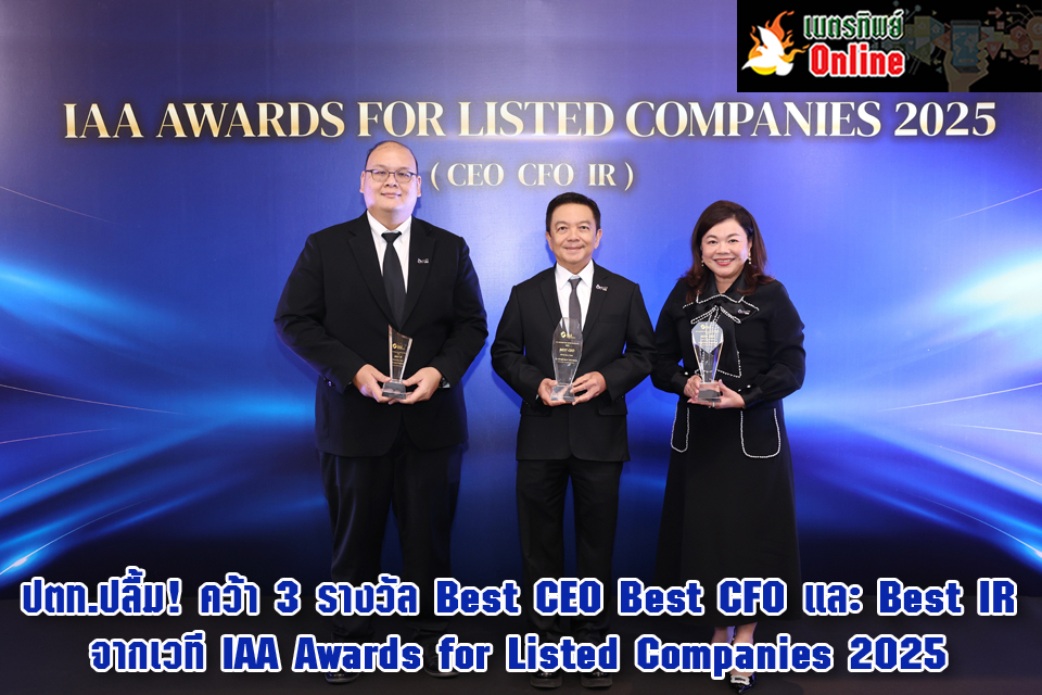 เมื่อเร็ว ๆ นี้ ดร.คงกระพัน อินทรแจ้ง ประธานเจ้าหน้าที่บริหารและกรรมการผู้จัดการใหญ่ (กลาง) พร้อมด้วย นางสาวภัทรลดา สง่าแสง ประธานเจ้าหน้าที่บริหารการเงิน (ขวา) บริษัท ปตท. จำกัด (มหาชน) (ปตท.) รับรางวัลซีอีโอยอดเยี่ยม (Best CEO) และ รางวัลซีเอฟโอยอดเยี่ยม (Best CFO) ตามลำดับ นอกจากนี้ ปตท. รับรางวัลนักลงทุนสัมพันธ์ยอดเยี่ยม (Best IR) ในกลุ่มอุตสาหกรรมปิโตรเลียม จากงาน IAA Awards for Listed Companies 2025 จัดโดยสมาคมนักวิเคราะห์การลงทุน (Investment Analysts Association) ณ Eastin Grand Hotel Phayathai