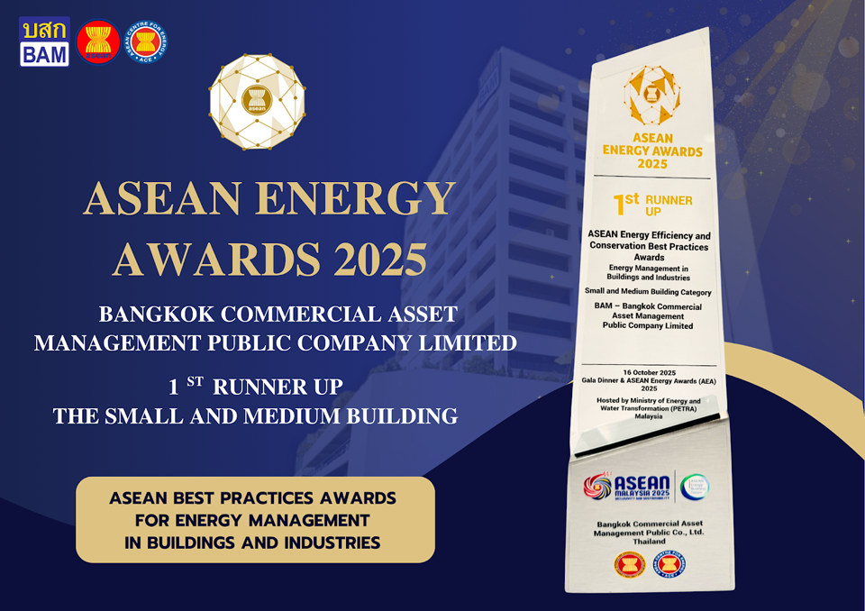 บริษัท บริหารสินทรัพย์ กรุงเทพพาณิชย์ จำกัด (มหาชน) หรือ BAM คว้ารางวัลด้านพลังงานระดับอาเซียน ได้รับรางวัลรองชนะเลิศอันดับ 1 ด้านการบริหารจัดการอาคารดีเด่นในอาคารและโรงงานอุตสาหกรรม (ASEAN Best Practices Awards for Energy Management in Buildings and Industries) ประเภทอาคารขนาดเล็กและขนาดกลาง (Small and Medium Building Category) จากเวที ASEAN Energy Awards 2025