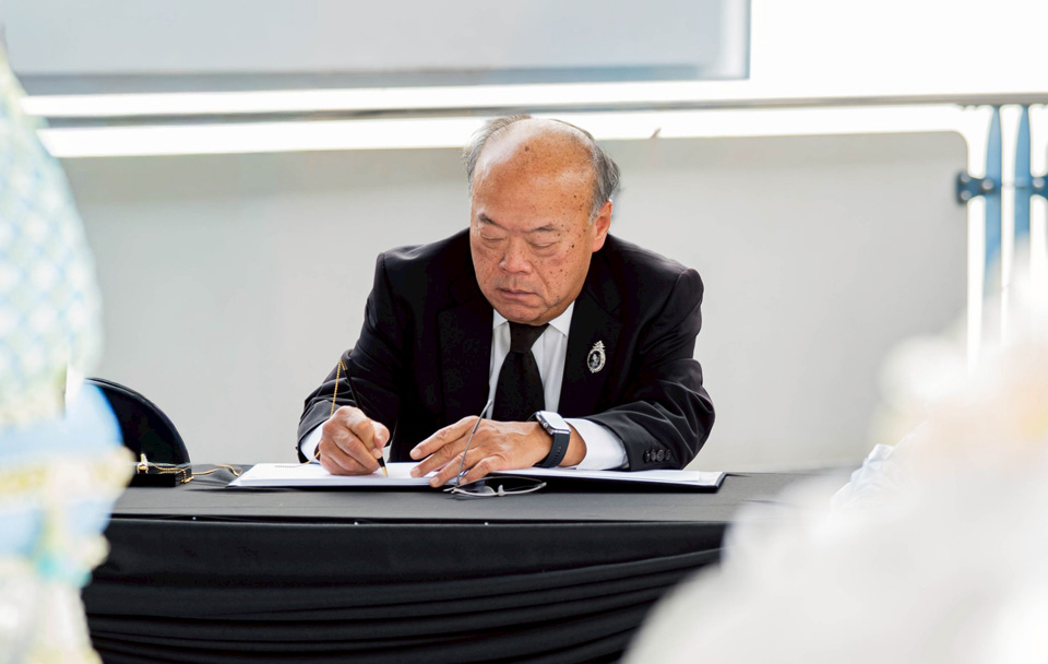 โดยในพิธีดังกล่าว ประธานในพิธีได้ถวายสักการะ และวางพานพุ่ม เบื้องหน้าพระฉายาลักษณ์ จากนั้นได้นำกล่าวถวายความอาลัย และนำผู้เข้าร่วมพิธีร่วมยืนสงบนิ่งเป็นเวลา 93 วินาที เพื่อน้อมรำลึกในพระมหากรุณาธิคุณอันหาที่สุดมิได้ พร้อมตั้งจิตอธิษฐานให้ดวงพระวิญญาณของพระองค์ท่านเสด็จสู่สวรรคาลัย ภายหลังเสร็จสิ้นการกล่าวถวายความอาลัย ประธานในพิธี คณะกรรมการ ผู้บริหาร และพนักงาน ได้ร่วมกันลงนามถวายความอาลัย เพื่อแสดงความจงรักภักดี และน้อมสำนึกในพระมหากรุณาธิคุณของพระองค์ท่านเป็นลำดับสุดท้าย