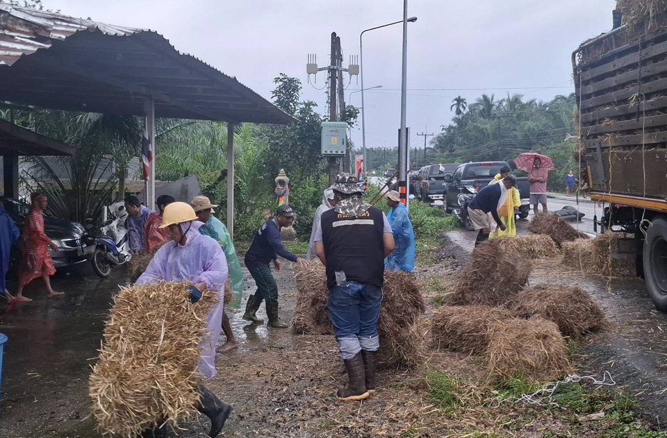 ในระยะเผชิญเหตุ กรมปศุสัตว์ได้เร่งดำเนินการแจกจ่ายเสบียงหญ้าอาหารสัตว์พระราชทาน จำนวน 156,740 กิโลกรัม อพยพสัตว์ จำนวน 27,512 ตัว สนับสนุนชุดส่งเสริมสุขภาพสัตว์ (แร่ธาตุ/ยาปฏิชีวนะ/วิตามิน) จำนวน 459 ชุด รวมถึงถุงยังชีพสัตว์ พร้อมส่งหน่วยสัตวแพทย์เคลื่อนที่เข้าดูแลรักษาสัตว์ในพื้นที่เสี่ยงอย่างต่อเนื่อง ส่วนความเสียหายที่สัตว์ตายและสูญหาย มีจำนวน 5 จังหวัด ได้แก่ พัทลุง ตรัง นครศรีธรรมราช ปัตตานี และสตูล รวม 583 ตัว เป็นโค 23 ตัว แพะ 3 ตัว แกะ 1 ตัว และไก่พื้นเมือง 556 ตัว