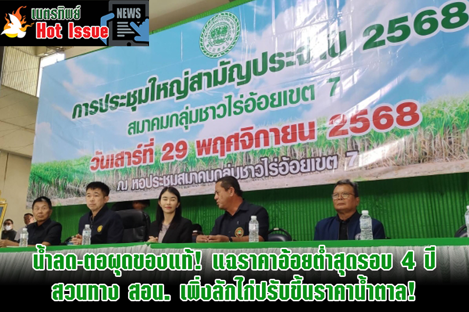 วิกฤตราคาอ้อยตกต่ำสุดในรอบ 4 ปี ทำชาวไร่อ้อยเขต 7 นั่งไม่ติด หวั่นม็อบอ้อยลุกฮือ ระดมชาวไร่อ้อย 4 จังหวัดรับมือราคาคาน้ำตาลโลกดิ่งเหลือ 14 เซนต์/ปอนด์ สวนทางแก๊งไม่กลัวเบาหวานใน สอน. เพิ่งลักไก่ปรับขึ้นราคาน้ำตาลสัปดาห์ก่อน