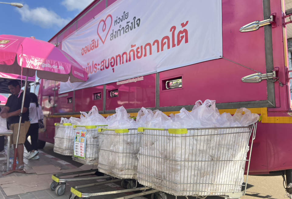 โดยในระยะนี้ ธนาคารจะยังคงเดินหน้าแจกจ่ายอาหารปรุงสุก วัตถุดิบปรุงอาหาร ถุงยังชีพ เสื้อผ้า ยารักษาโรค และสิ่งของจำเป็นต่าง ๆ สำหรับใช้ยามฉุกเฉิน กระจายสู่ศูนย์พักพิงต่าง ๆ และประชาชนผู้ประสบภัยอย่างต่อเนื่อง สำหรับ “โรงครัวออมสิน” บริเวณด้านหน้าห้างบิ๊กซี เอ็กซ์ตร้า หาดใหญ่ ยังคงเปิดบริการแจกจ่ายอาหารให้ประชาชนเดินทางมารับได้ในรอบเที่ยงและรอบเย็นทุกวัน จนกว่าสถานการณ์จะเริ่มคลี่คลายมากขึ้น ทั้งนี้ ธนาคารยังเตรียมมาตรการช่วยเหลืออื่น ๆ เพิ่มเติม เพื่อช่วยเหลือและสนับสนุนการฟื้นฟูให้ประชาชนสามารถกลับมาดำเนินชีวิตได้ตามปกติโดยเร็ววัน