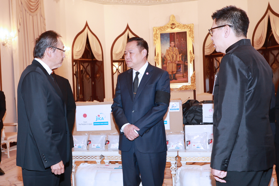 เมื่อวันที่ 2 ธันวาคม 2568 นายอนุทิน ชาญวีรกูล นายกรัฐมนตรีและรัฐมนตรีว่าการกระทรวงมหาดไทย นายบวรศักดิ์ อุวรรณโณ รองนายกรัฐมนตรี และ ดร.เอกนิติ นิติทัณฑ์ประภาศ รองนายกรัฐมนตรีและรัฐมนตรีว่าการกระทรวงการคลัง ได้เข้าร่วมพิธีรับมอบสิ่งของบรรเทาทุกข์เพื่อช่วยเหลือผู้ประสบอุทกภัยในพื้นที่ภาคใต้จากรัฐบาลญี่ปุ่น จากนายมาซาโตะ โอตากะ เอกอัครราชทูตวิสามัญผู้มีอำนาจเต็มแห่งญี่ปุ่นประจำประเทศไทย และ Mr. Shunsuke Sakudo, Chief Representative of JICA Thailand Office ณ ตึกบัญชาการ 1 ทำเนียบรัฐบาล โดยมี นายลวรณ แสงสนิท ปลัดกระทรวงการคลัง นายอัครุตม์ สนธยานนท์ อธิบดีกรมธนารักษ์ และ นางจินดารัตน์ วิริยะทวีกุล ผู้อำนวยการสำนักงานบริหารหนี้สาธารณะ เข้าร่วมด้วย ทั้งนี้ รัฐบาลญี่ปุ่นผ่านองค์การความร่วมมือระหว่างประเทศแห่งญี่ปุ่น (Japan International Cooperation Agency: JICA) ได้มอบสิ่งของบรรเทาทุกข์ ประกอบด้วย เต็นท์ ผ้าห่ม แผ่นรองนอน ถังบรรจุน้ำพับได้ ผ้าใบเอนกประสงค์ และเครื่องกรองน้ำ
