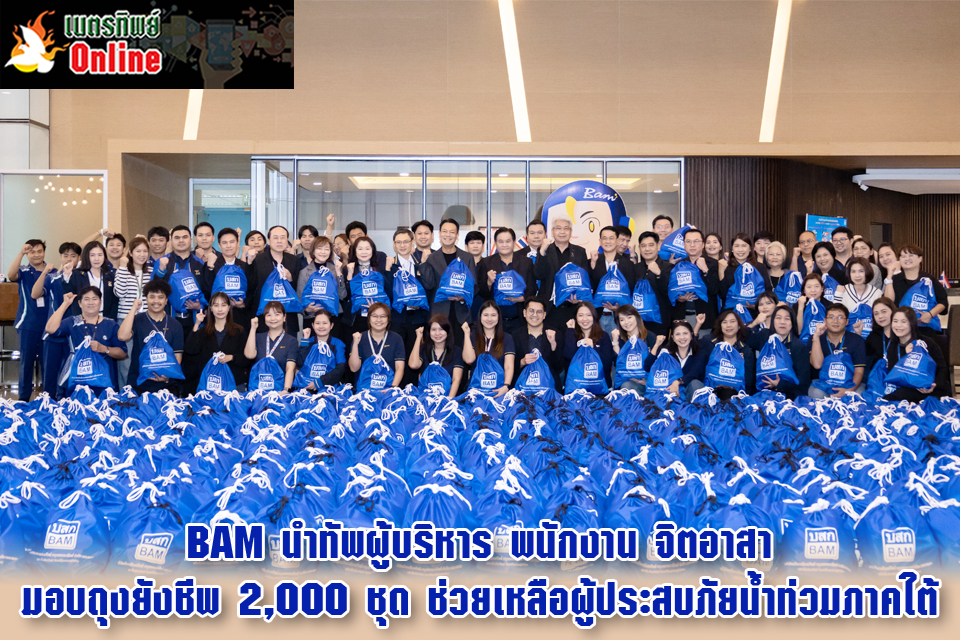 ดร.รักษ์ วรกิจโภคาทร ประธานเจ้าหน้าที่บริหาร บริษัทบริหารสินทรัพย์ กรุงเทพพาณิชย์ จำกัด (มหาชน) หรือ BAM นำทัพผู้บริหาร พนักงาน และจิตอาสา ลงพื้นที่ภาคใต้ “ร่วมส่งต่อพลังใจ ช่วยเหลือผู้ประสบภัยน้ำท่วม” มอบถุงยังชีพ ซึ่งประกอบด้วย อาหารแห้ง น้ำดื่ม ยาและเวชภัณฑ์ พร้อมของใช้ที่จำเป็น เพื่อช่วยเหลือพี่น้องประชาชนที่ประสบอุทกภัยในพื้นที่หาดใหญ่และภาคใต้ จำนวนกว่า 2,000 ชุด