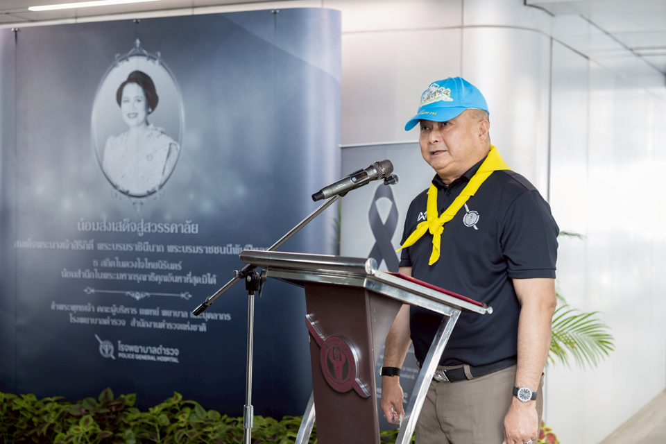 โดยประธานในพิธี ได้นำผู้เข้าร่วมกิจกรรมถวายความเคารพ เบื้องหน้าพระฉายาลักษณ์สมเด็จพระนางเจ้าสิริกิติ์ พระบรมราชินีนาถ พระบรมราชชนนีพันปีหลวง และยืนสงบนิ่ง 93 วินาที เพื่อน้อมถวายความอาลัย และผู้แทนจากทุกหน่วยงานที่เข้าร่วมกิจกรรม ได้ร่วมกันเดินแจกโบว์สีดำให้กับบุคลากรของโรงพยาบาลตำรวจ รวมถึงประชาชนที่ใช้เส้นทางบริเวณทางเชื่อมรถไฟฟ้า เพื่อแสดงออกถึงความจงรักภักดี และสำนึกในพระมหากรุณาธิคุณอันหาที่สุดมิได้ ซึ่งได้รับความสนใจจากประชาชนเป็นอย่างมาก