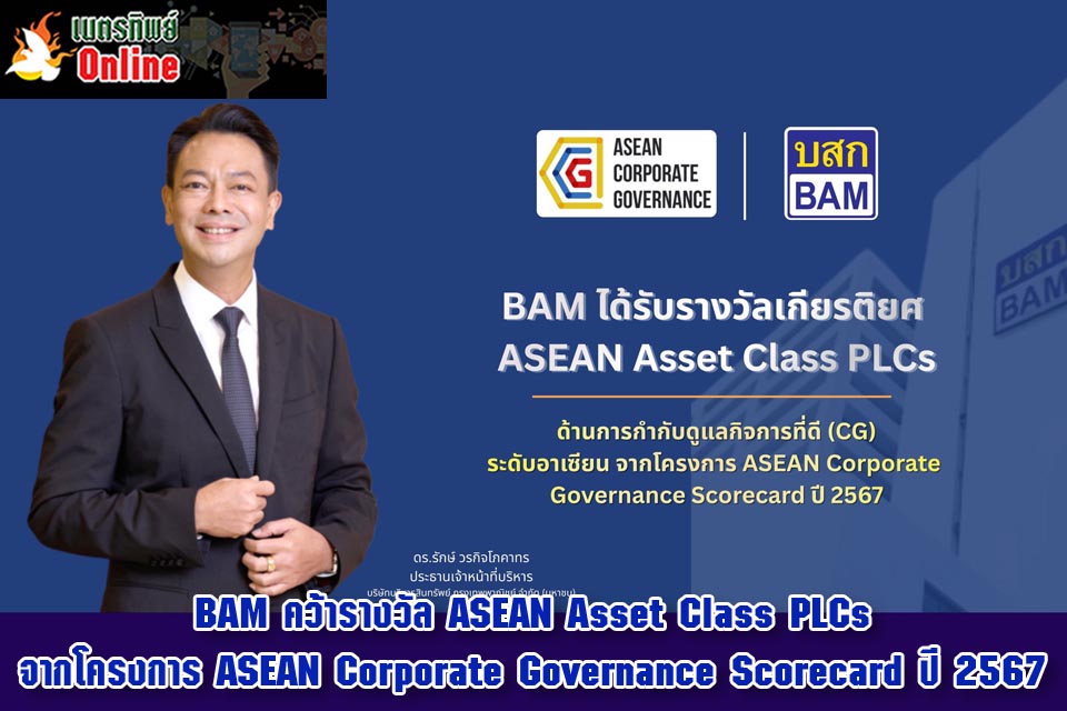 BAM ได้รับการประเมินการกำกับดูแลกิจการที่ดีของบริษัทจดทะเบียน จากโครงการ ASEAN Corporate Governance Scorecard (ASEAN CG Scorecard) ประจำปี 2567 โดยได้รับรางวัลในประเภท ASEAN Asset Class PLCs