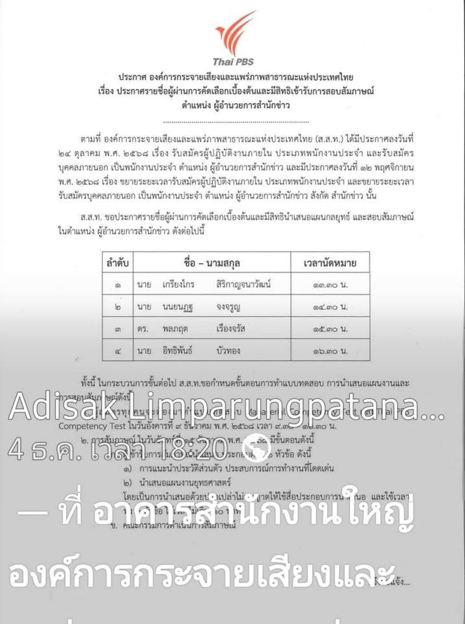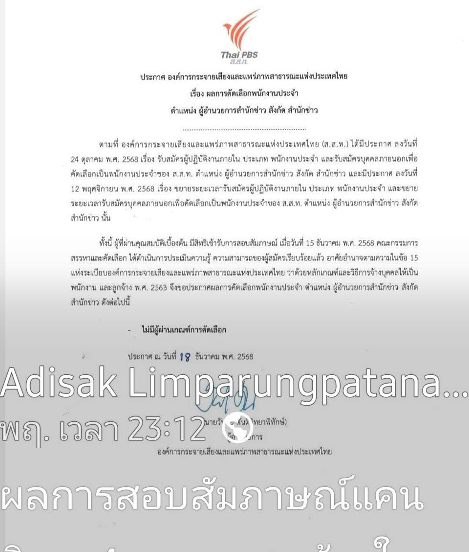 ผู้สื่อข่าวรายงานว่า เมื่อวันที่ ๒๑ ธ.ค. ๒๕๖๘ “ศักดิ์ชัย พฤฒิภัค หรือพี่บ๊วย” อดีตผู้ร่วมบุกเบิกการก่อตั้งสถานีไทยพีบีเอส ได้โพสต์ FB ..