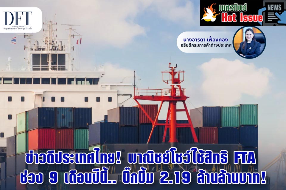 กระทรวงพาณิชย์ โดยกรมการค้าต่างประเทศ รายงานตัวเลขการใช้สิทธิ FTA ช่วงเดือน มกราคม-กันยายน ปี 2568 มีมูลค่าการใช้สิทธิรวมกว่า 67,931.01 ล้านดอลลาร์สหรัฐ หรือประมาณ 2.19 ล้านล้านบาท โดยขยายตัวเพิ่มขึ้น 6.97% เมื่อเทียบกับช่วงเดียวกันของปีก่อน แจงการเติบโตของการใช้สิทธิ FTA ของไทยไม่ใช่เพียงสัญญาณเชิงบวกด้านการส่งออก แต่เป็นหลักฐานสำคัญว่าไทยกำลังก้าวเข้าสู่บทบาทที่ใหญ่ขึ้นในห่วงโซ่การผลิต
