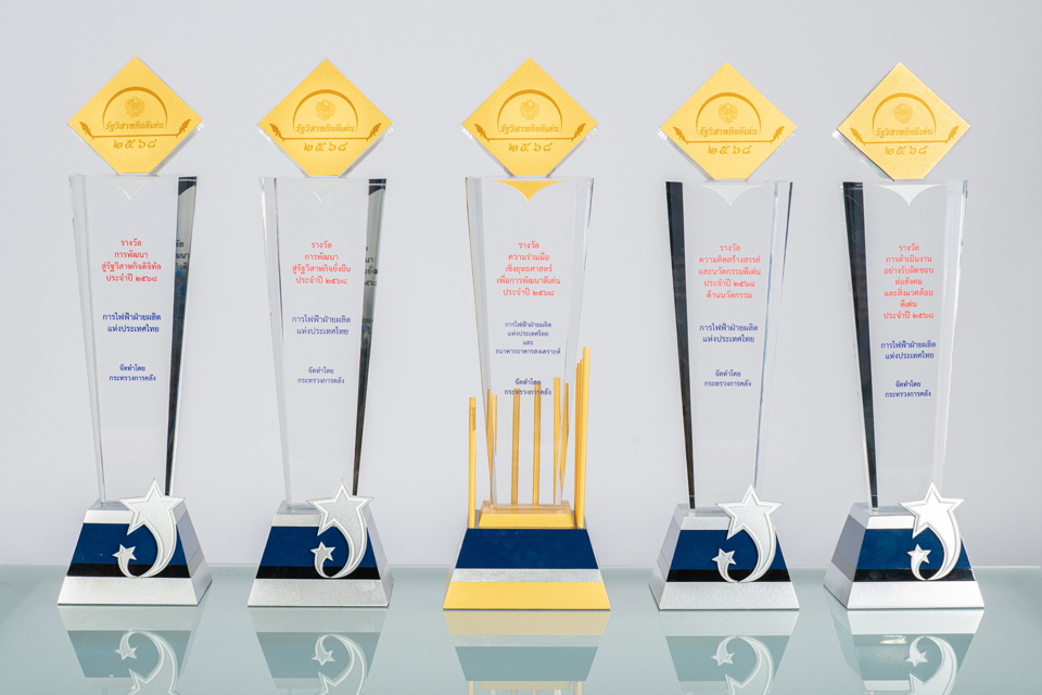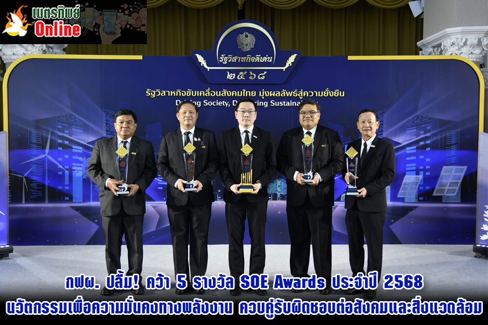 โดย กฟผ. ได้รับรางวัลรัฐวิสาหกิจดีเด่นประจำปี 2568 จำนวน 5 รางวัล ประกอบด้วย