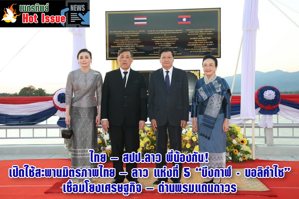 พระบาทสมเด็จพระเจ้าอยู่หัว และสมเด็จพระนางเจ้าฯ พระบรมราชินี เสด็จพระราชดำเนินไปทรงประกอบพิธีเปิดสะพานมิตรภาพไทย - ลาว แห่งที่ 5 (บึงกาฬ - บอลิคำไซ) อย่างเป็นทางการร่วมกับ ฯพณฯ นายทองลุน สีสุลิด ประธานประเทศแห่งสาธารณรัฐประชาธิปไตยประชาชนลาวและภริยา ณ บริเวณกลางสะพานมิตรภาพ ในโอกาสครบรอบ 75 ปี แห่งการสถาปนาความสัมพันธ์ทางการทูตระหว่างสองประเทศ